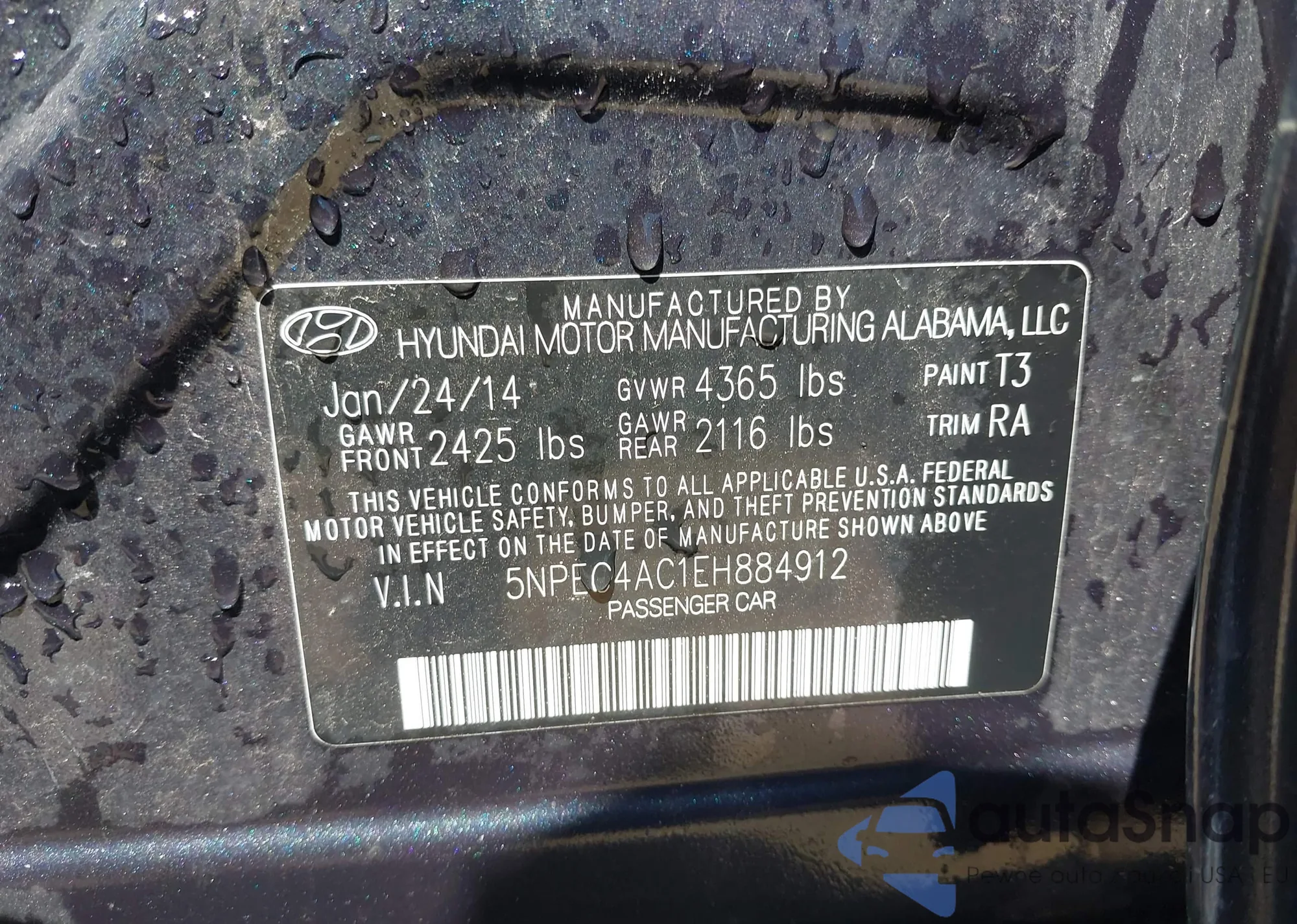 • VIN 5XYKT4A25DG411028