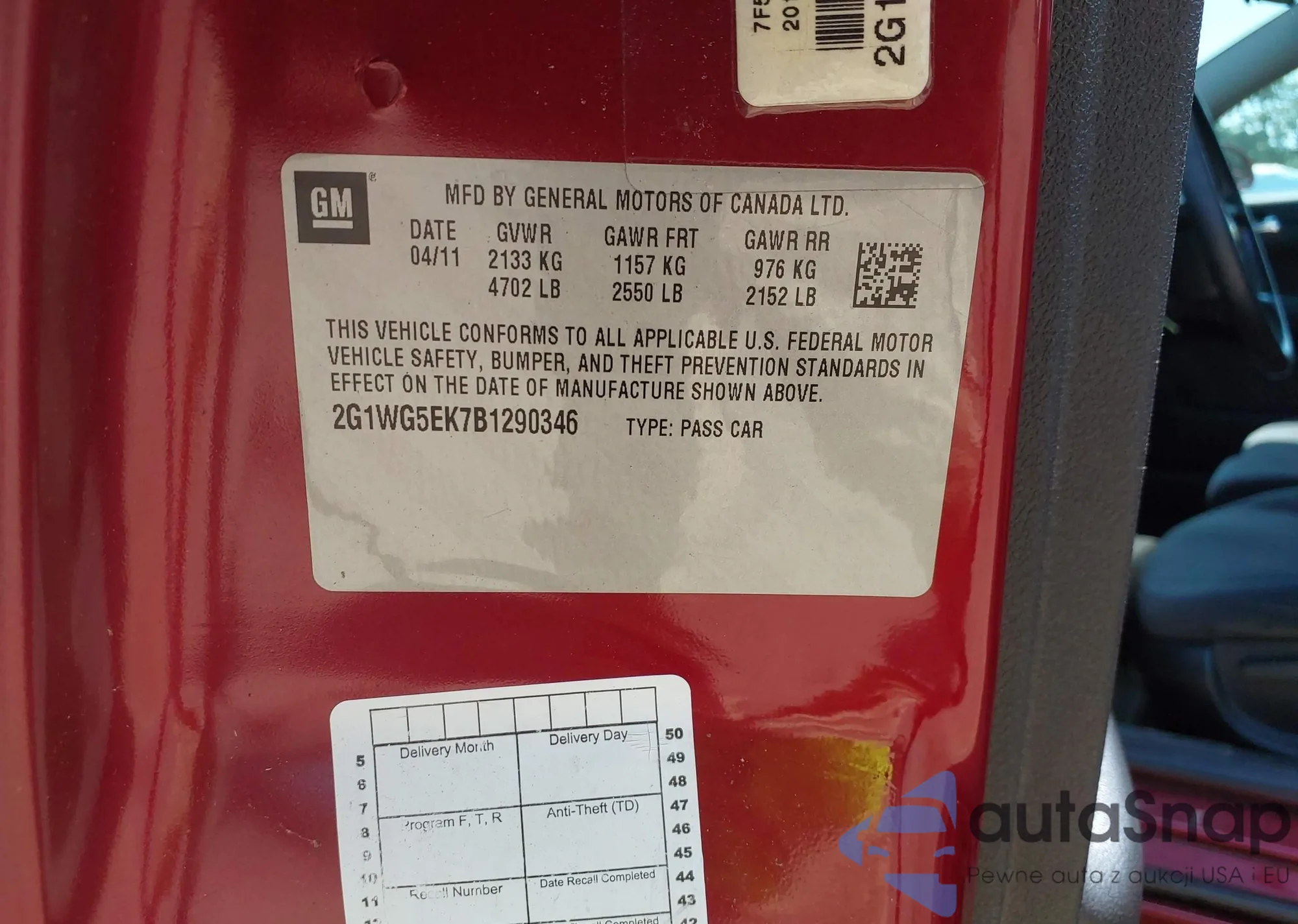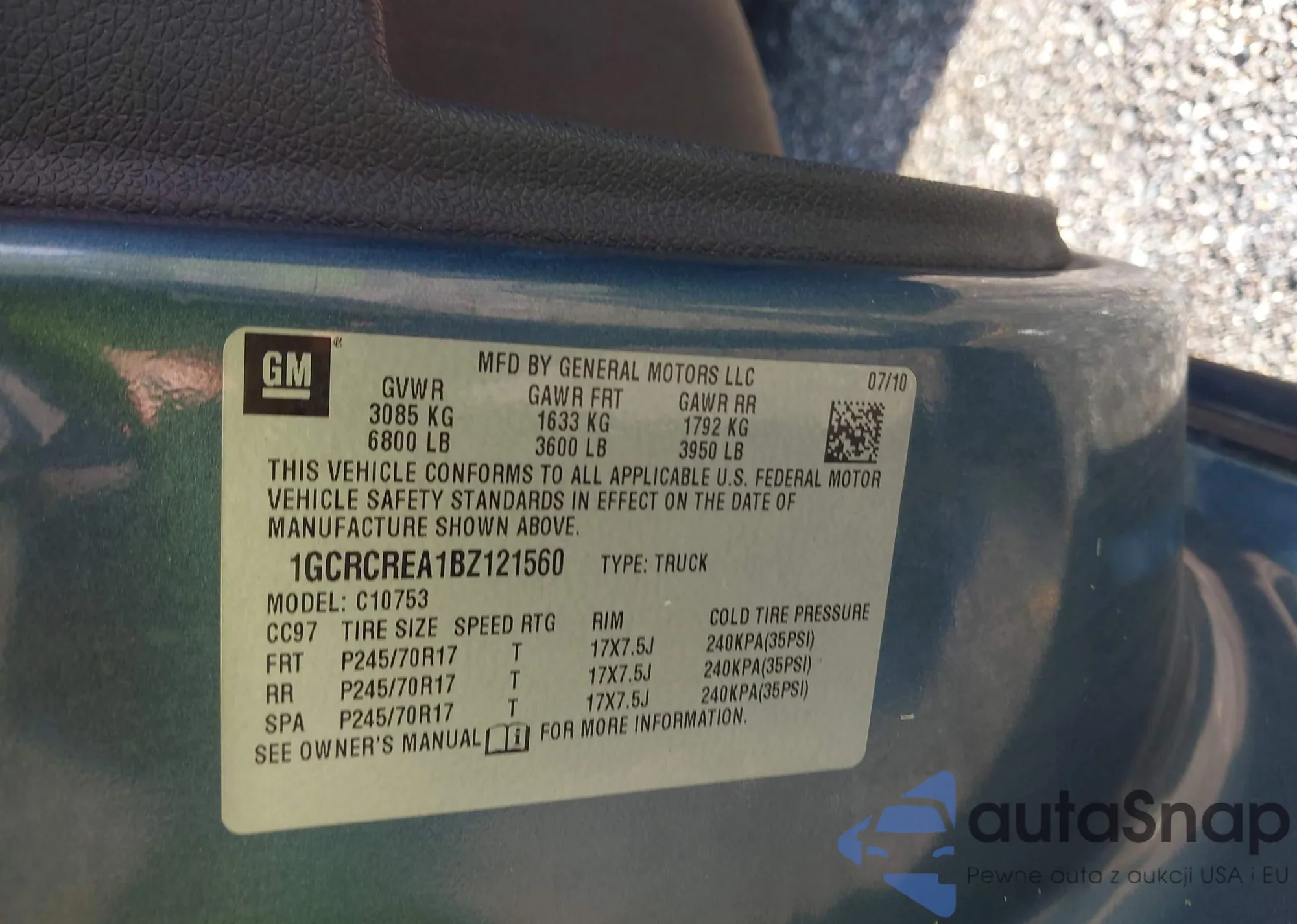 • VIN 1GCRCREA1BZ121560