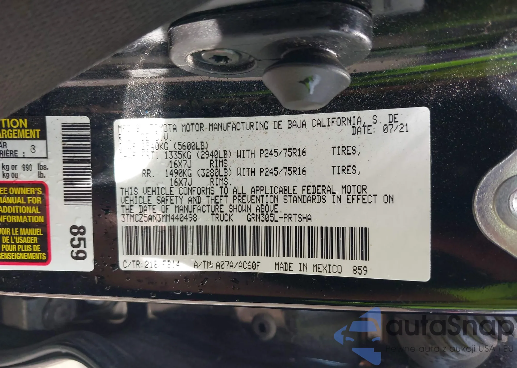 • VIN 3TMCZ5AN3MM440498
