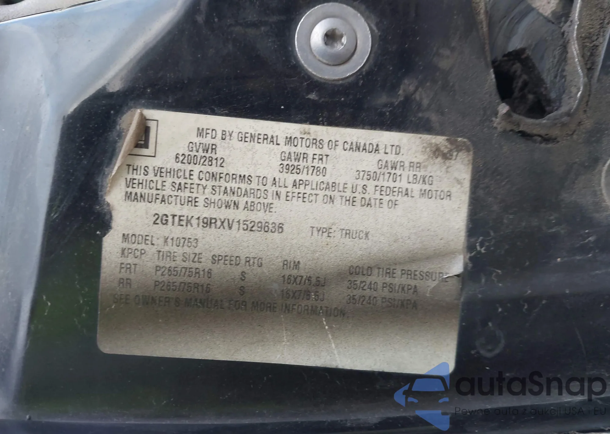 • VIN 2GTEK19RXV1529636