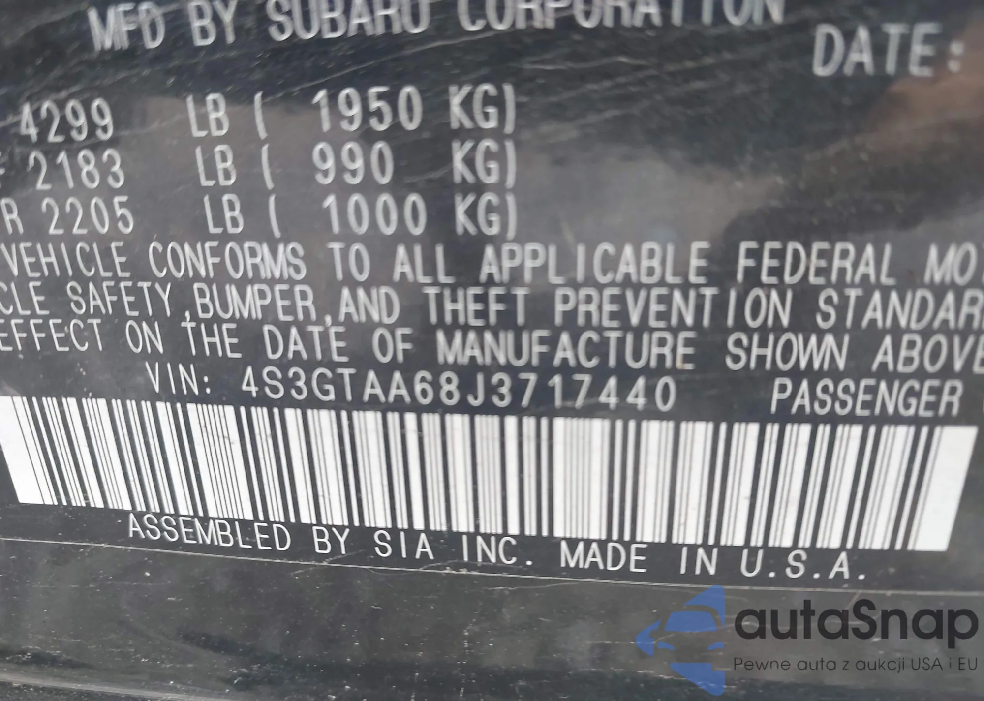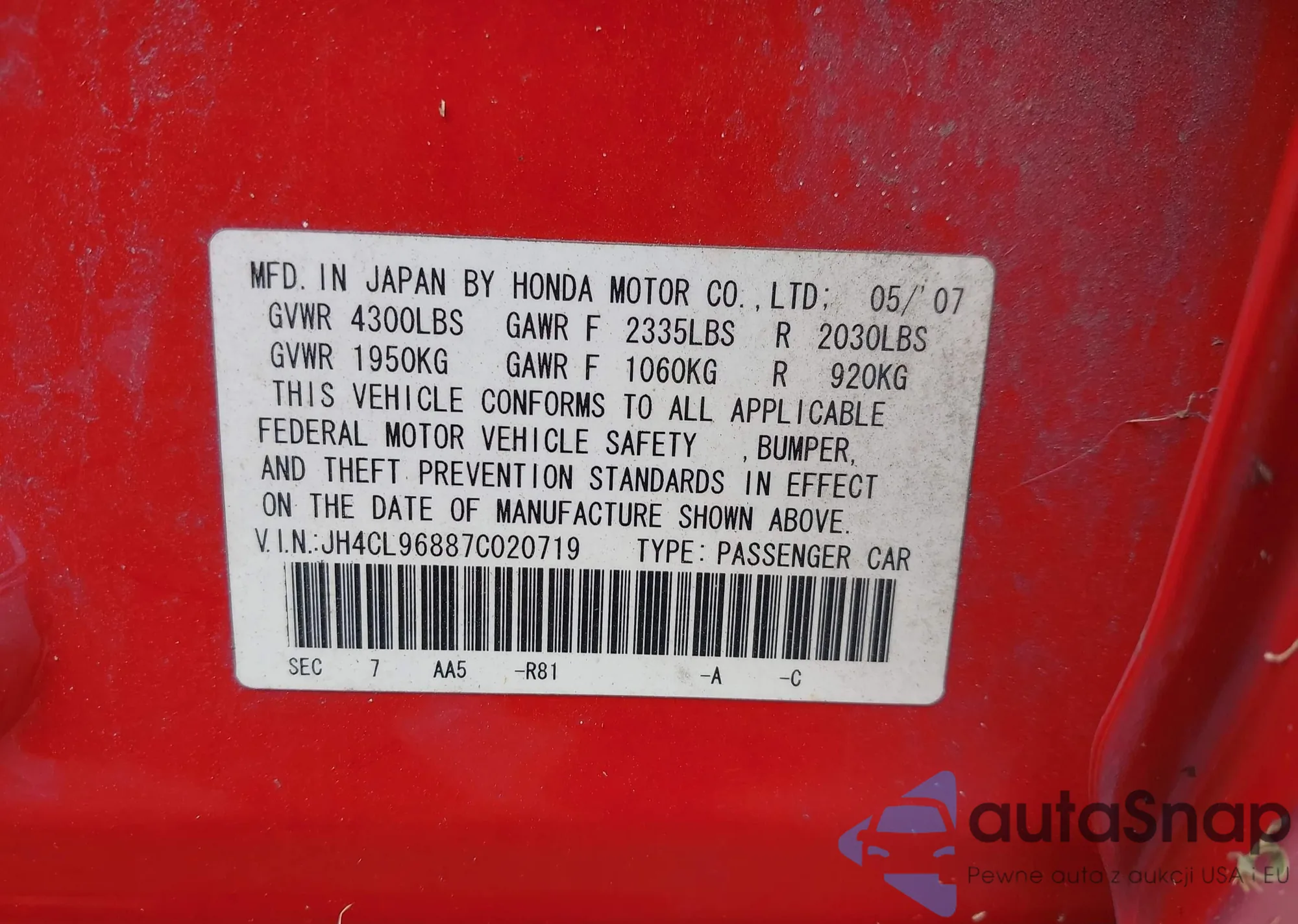 LOT: 43019909 VIN: JH4CL96887C020719