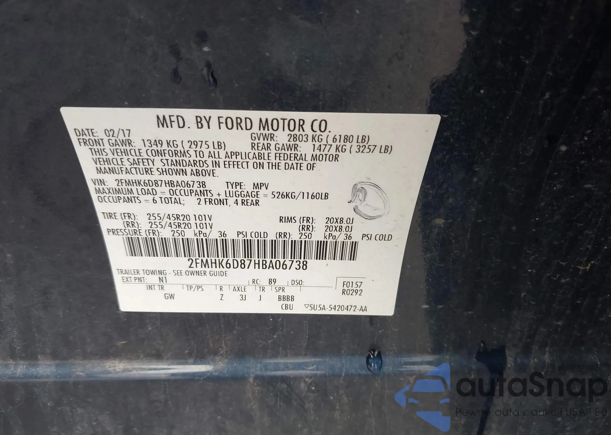 LOT: 41723466 VIN: KNAFX4A68F5417696