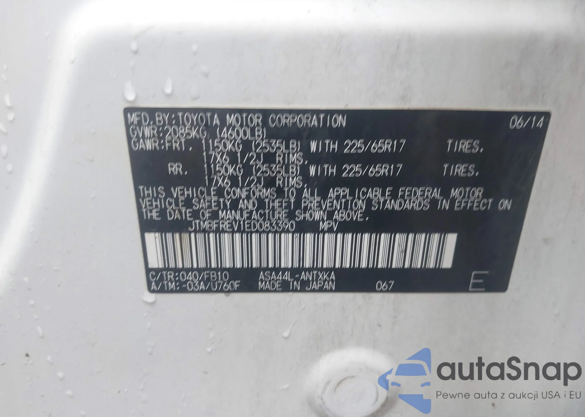 • VIN JTMBFREV1ED083390