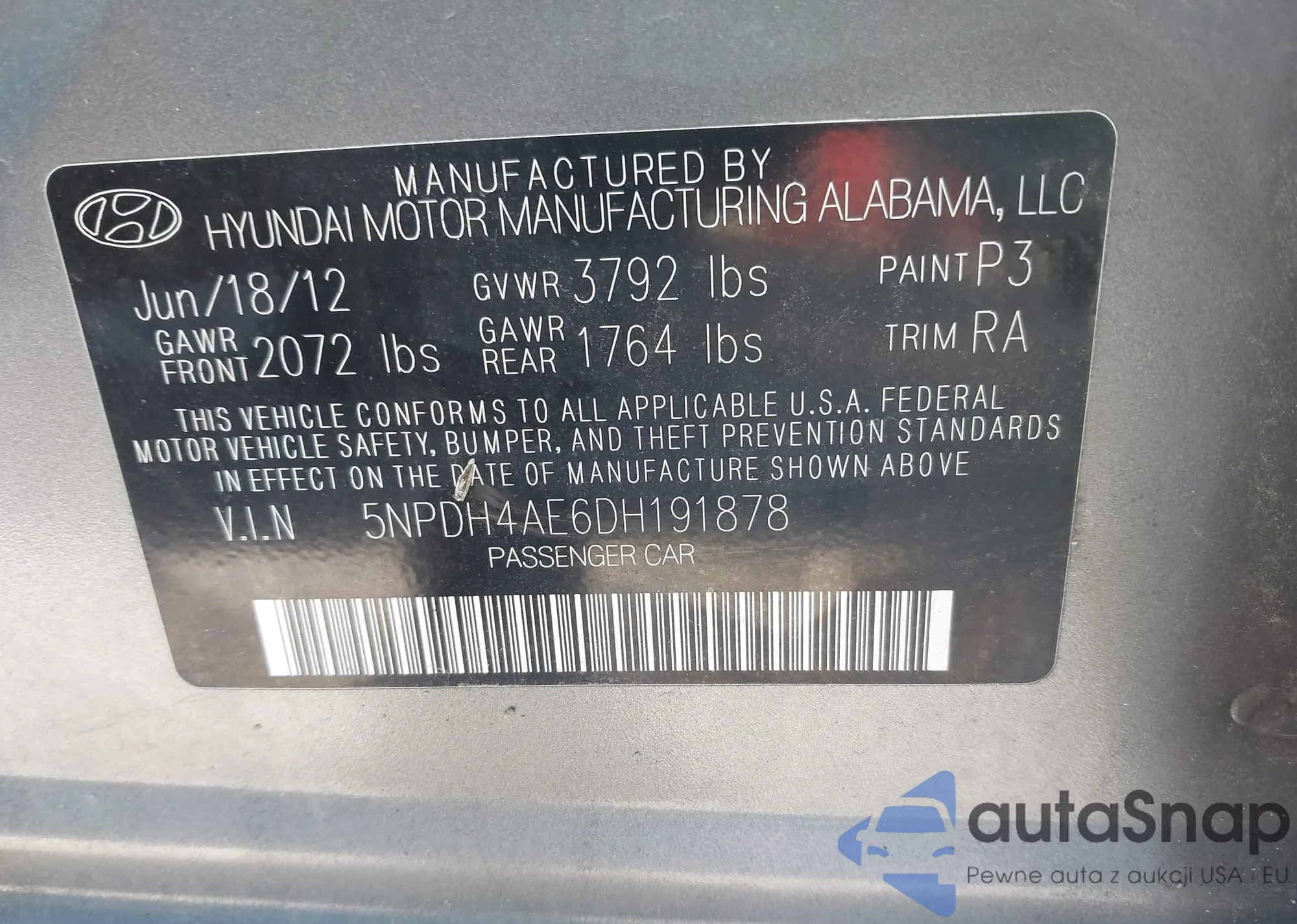 • VIN 5NPDH4AE6DH191878