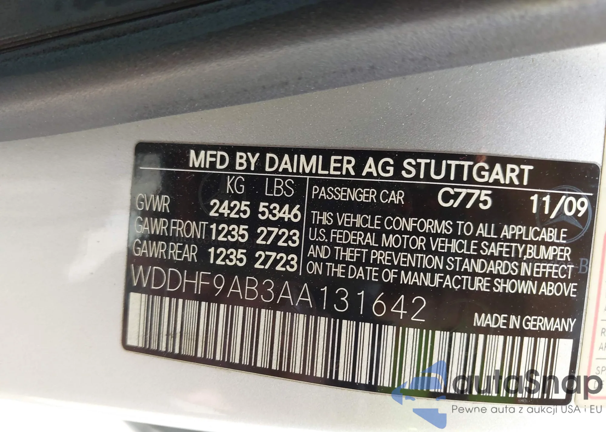 • VIN WDDHF9AB3AA131642