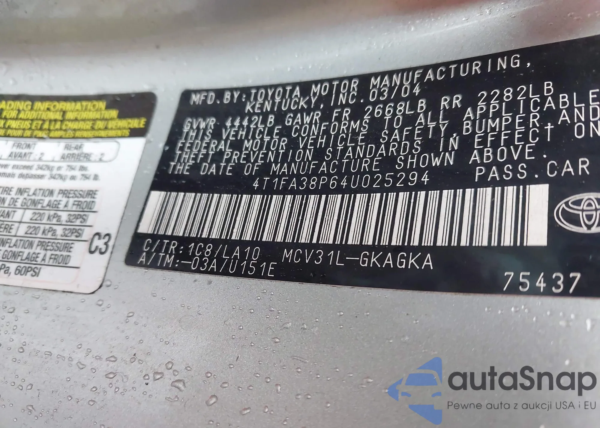 LOT: 42861466 VIN: 4T1FA38P64U025294