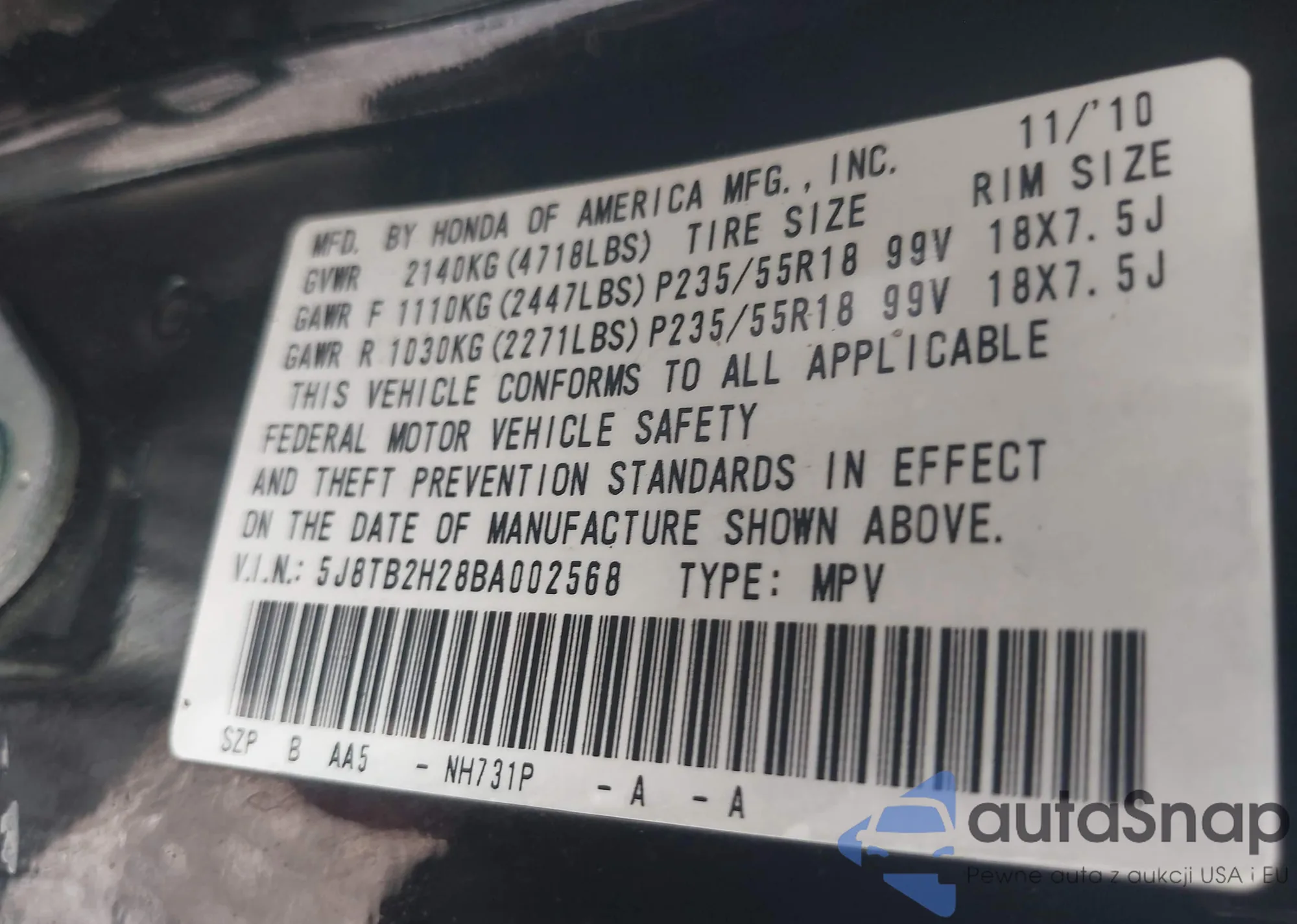 LOT: 41812232 VIN: 5NPDH4AE6DH191878