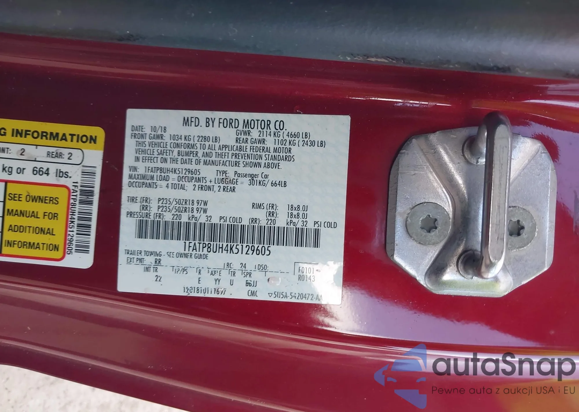 LOT: 42919258 VIN: 1FATP8UH4K5129605