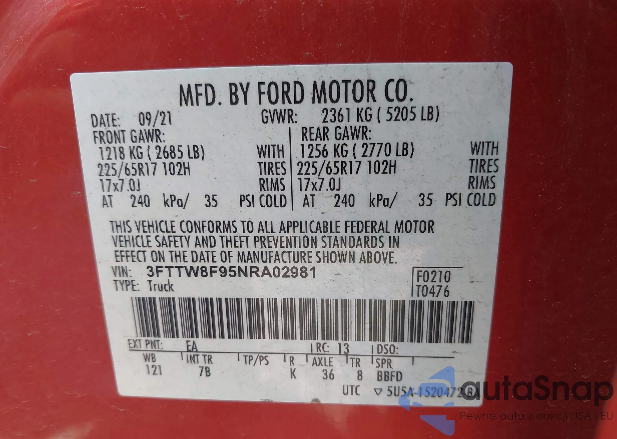 • VIN 3FTTW8F95NRA02981