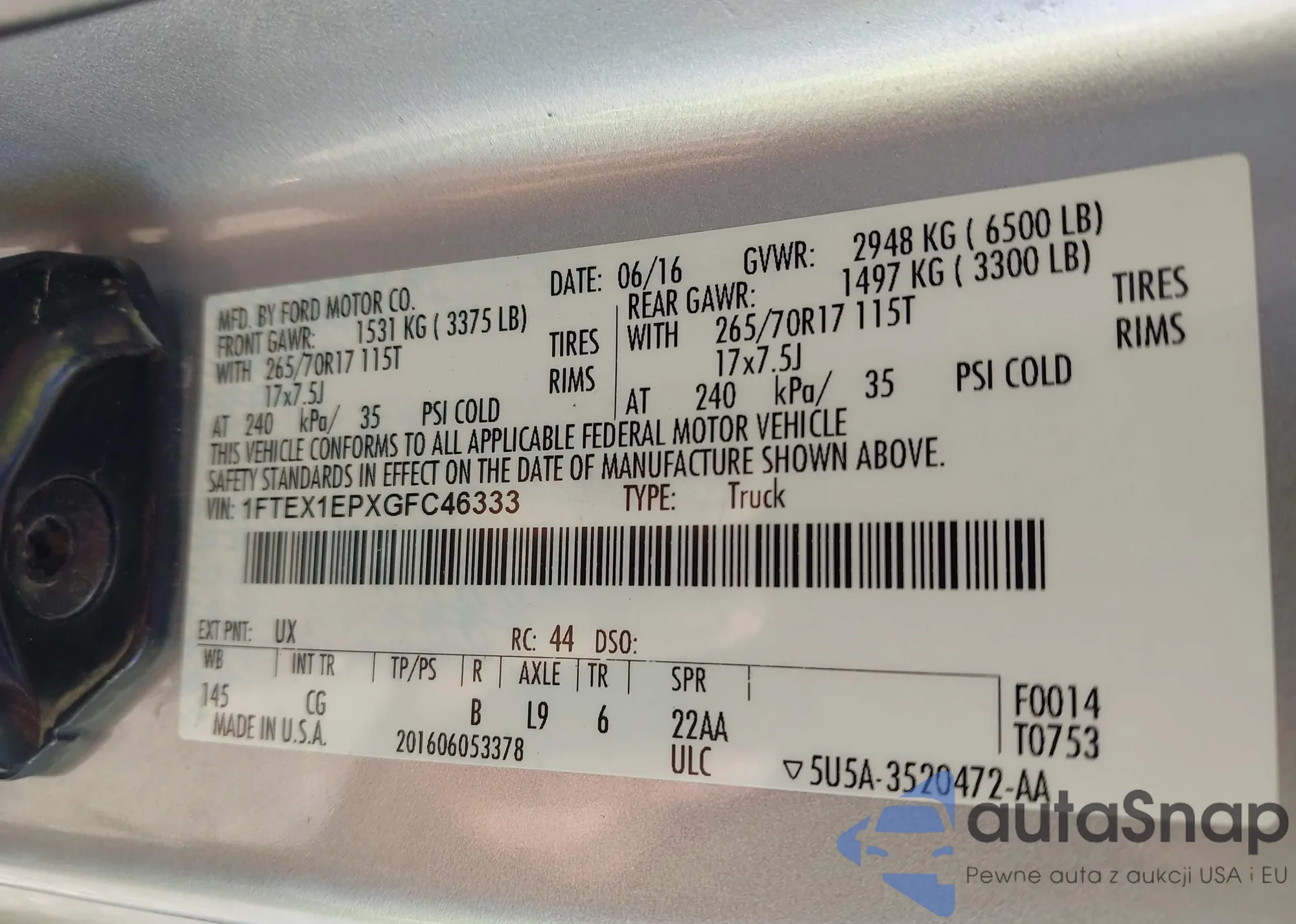 LOT: 42906205 VIN: 2FMPK3J81GBC16507