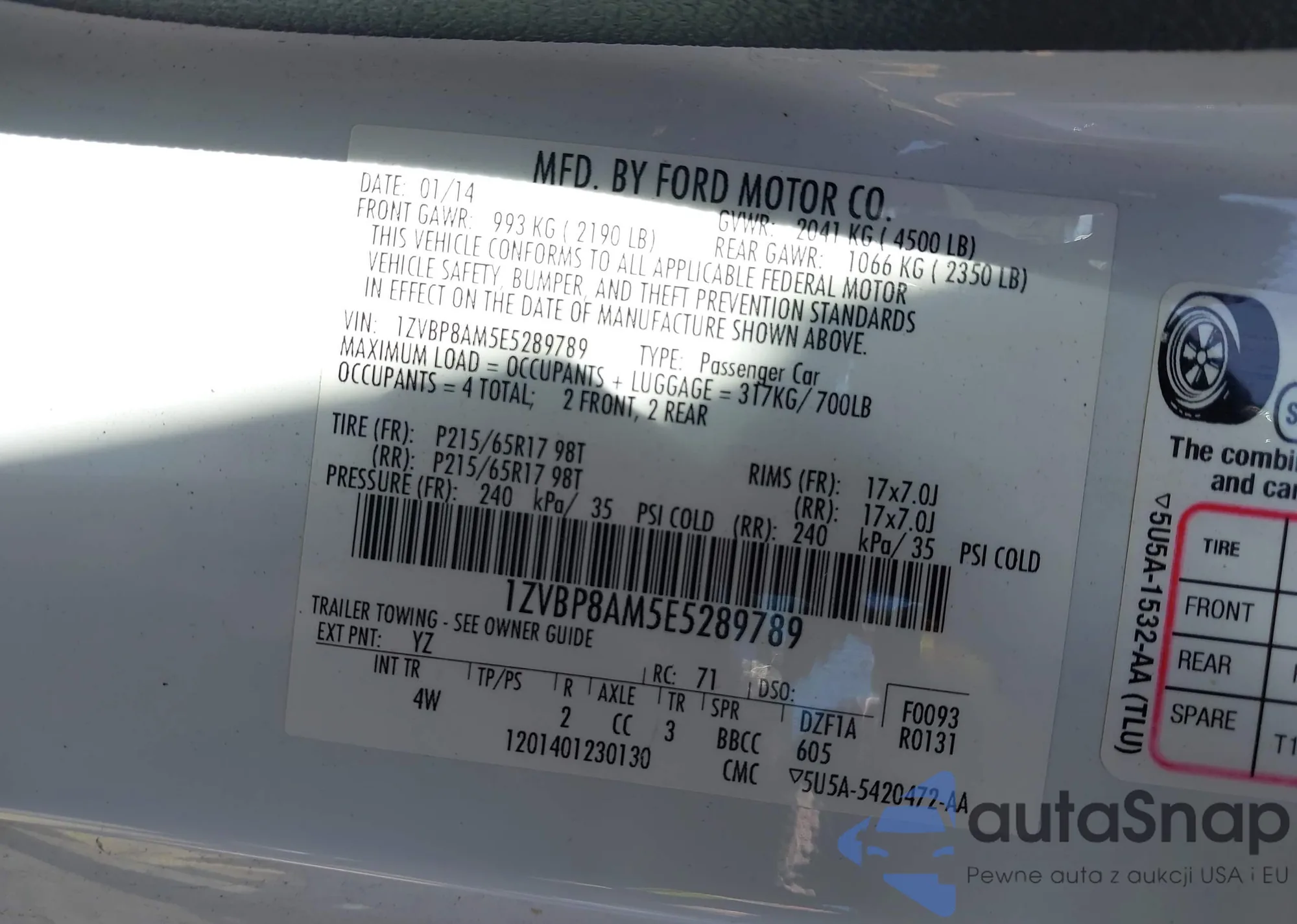 LOT: 42610873 VIN: 1FADP3F28EL331461