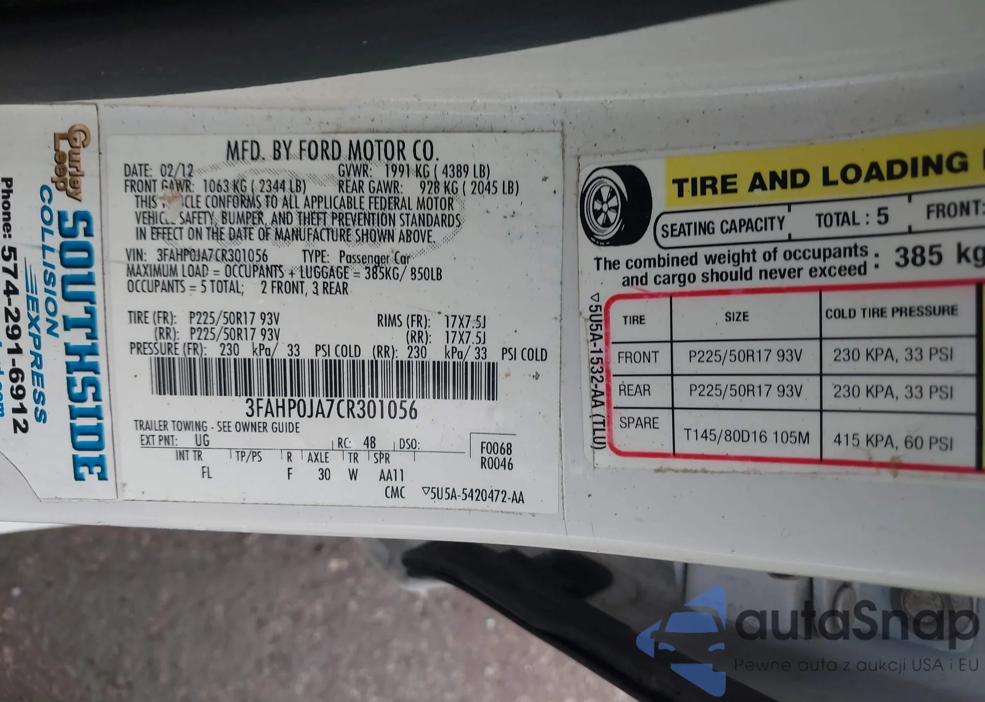 • VIN 2FMDK3GC2ABA69247