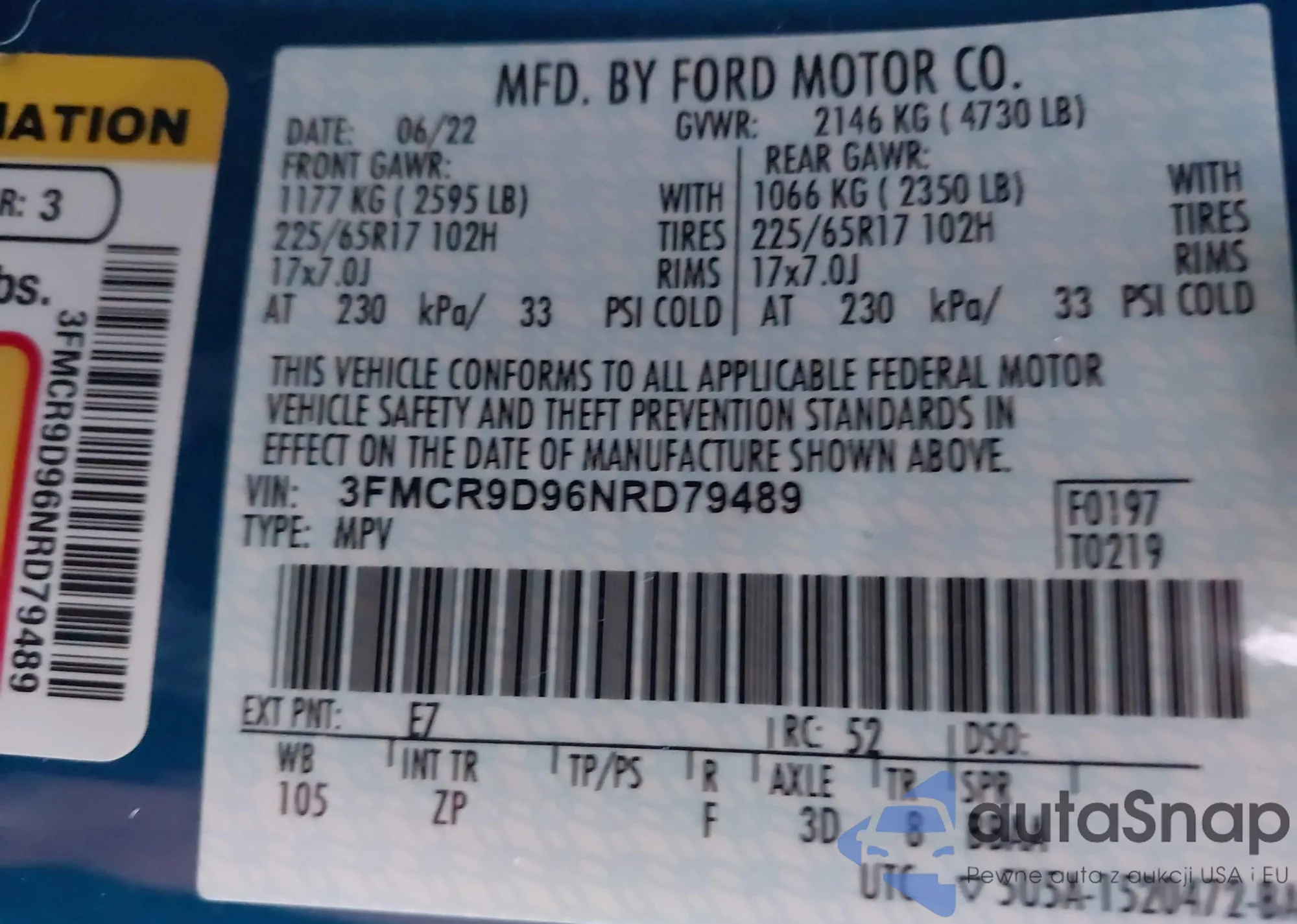 • VIN 3FMCR9D96NRD79489
