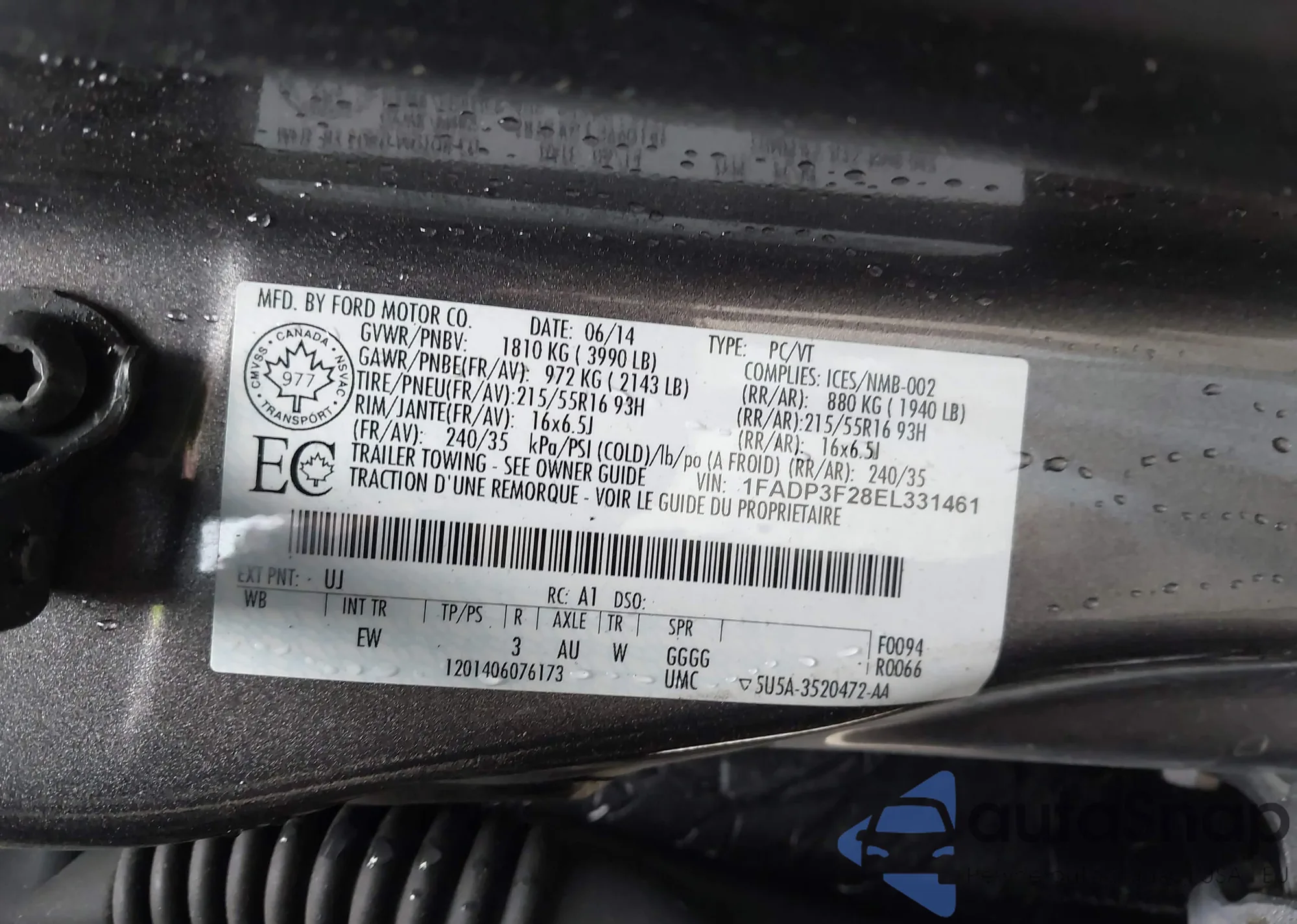• VIN 1FADP3F28EL331461