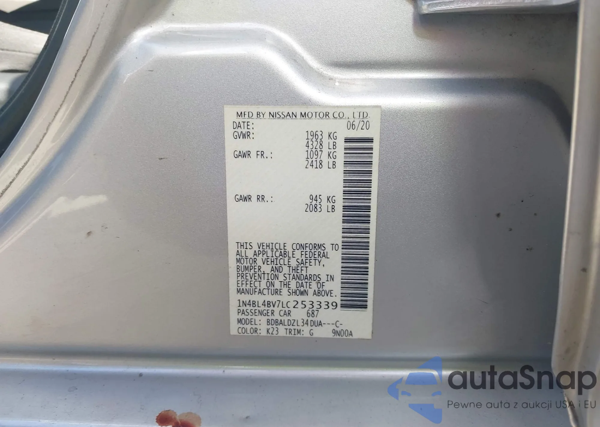 LOT: 39792971 VIN: 1N4BL4BV7LC253339
