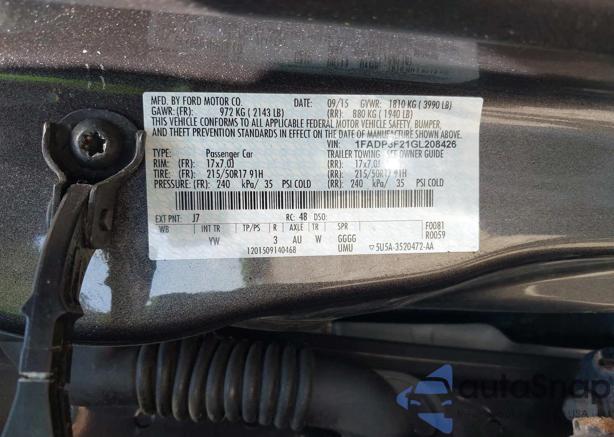 • VIN 1FADP3F21GL208426