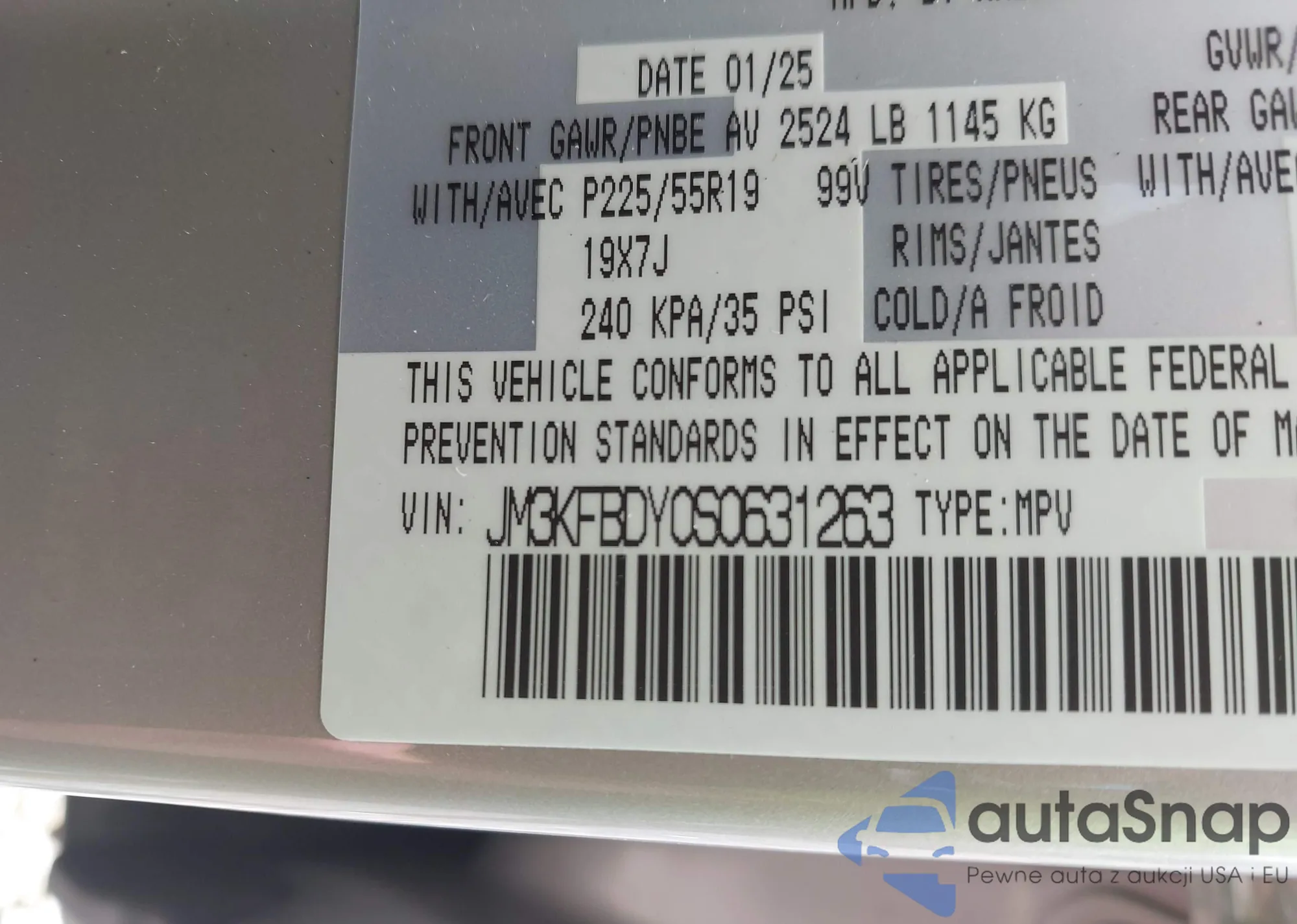 LOT: 42730170 VIN: JM3KFBDY0S0631263