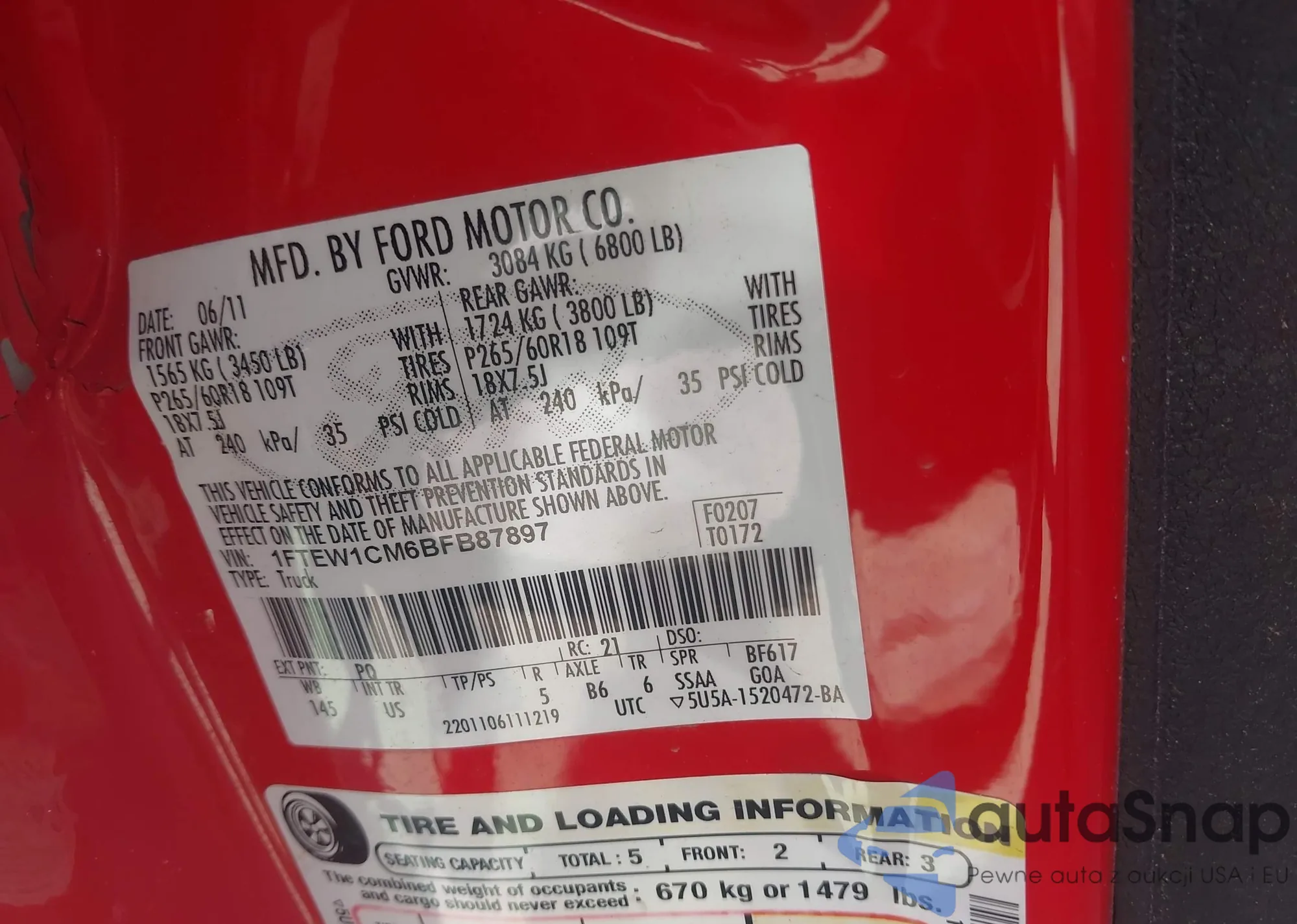• VIN 1FTEW1CM6BFB87897