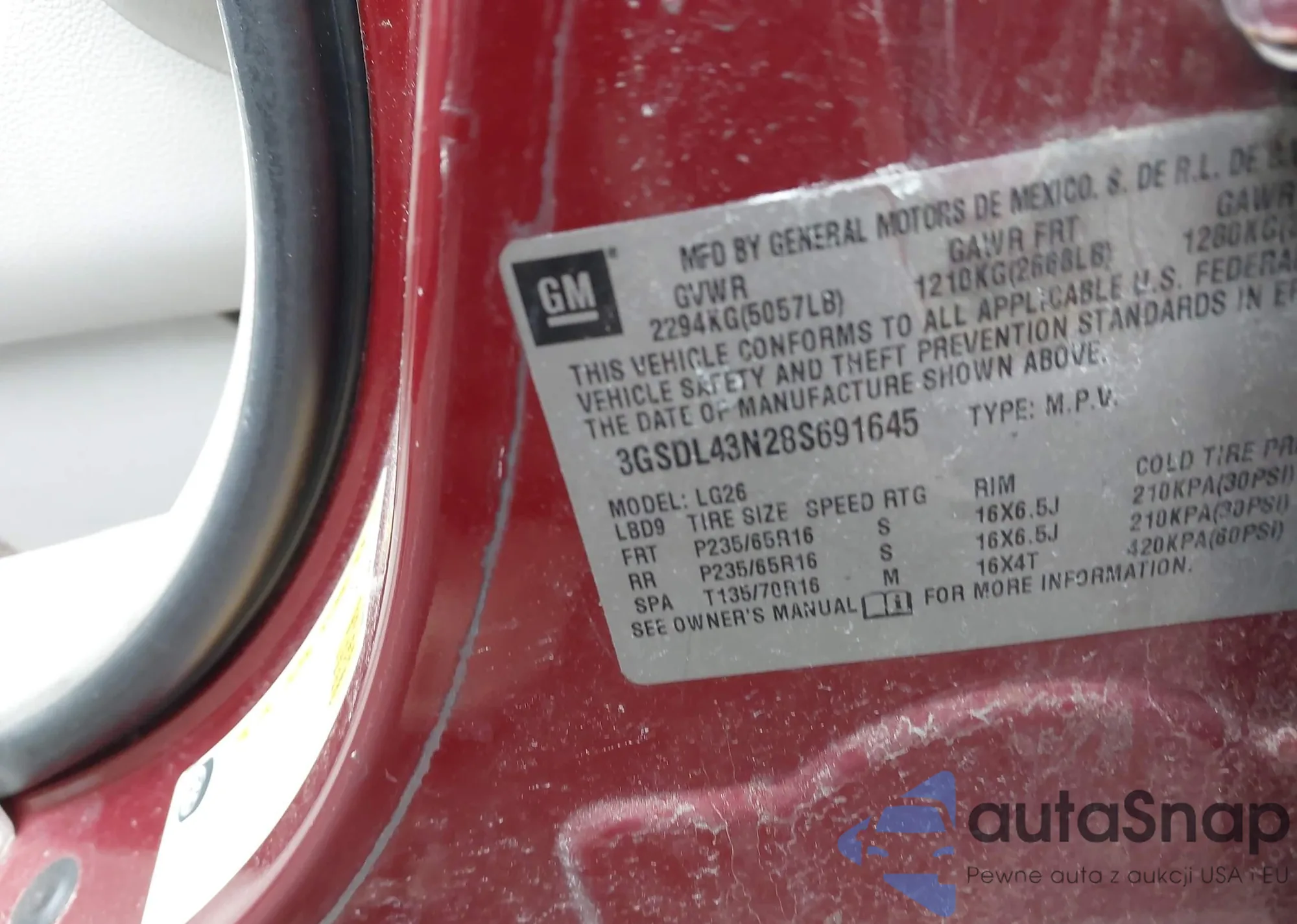 LOT: 42146159 VIN: 3GSDL43N28S691645