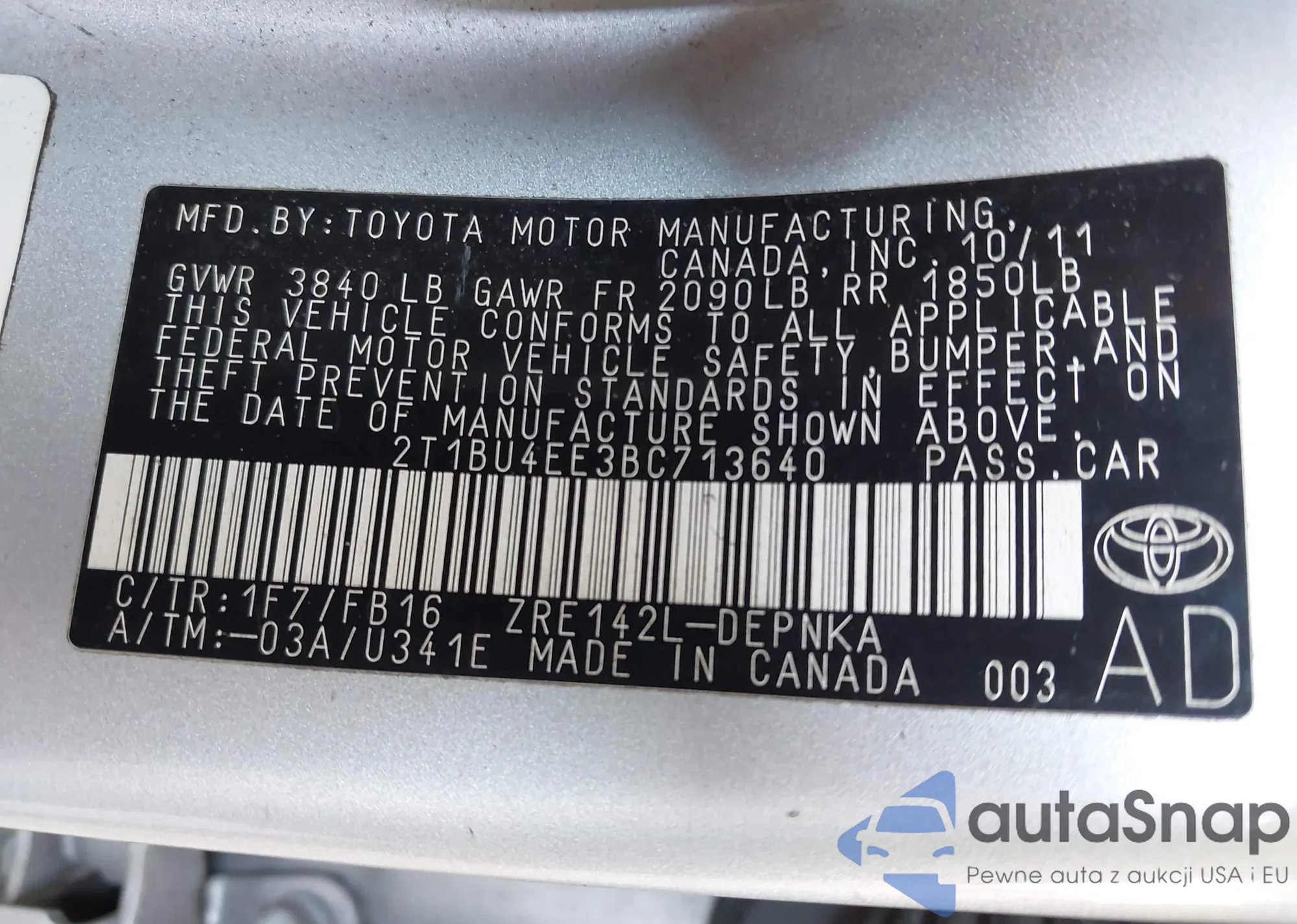 • VIN 2T1BU4EE3BC713640