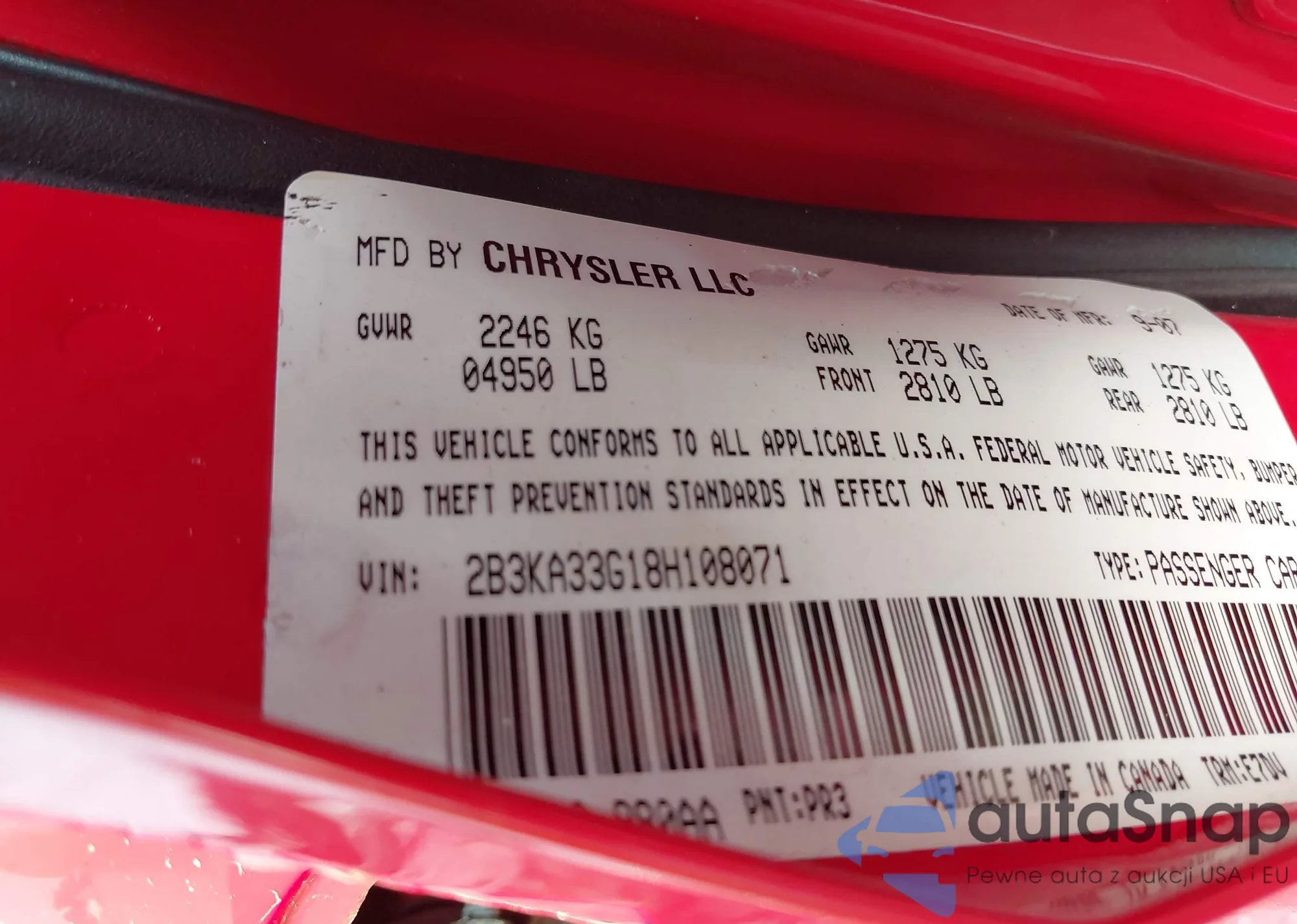 • VIN 2B3KA33G18H108071