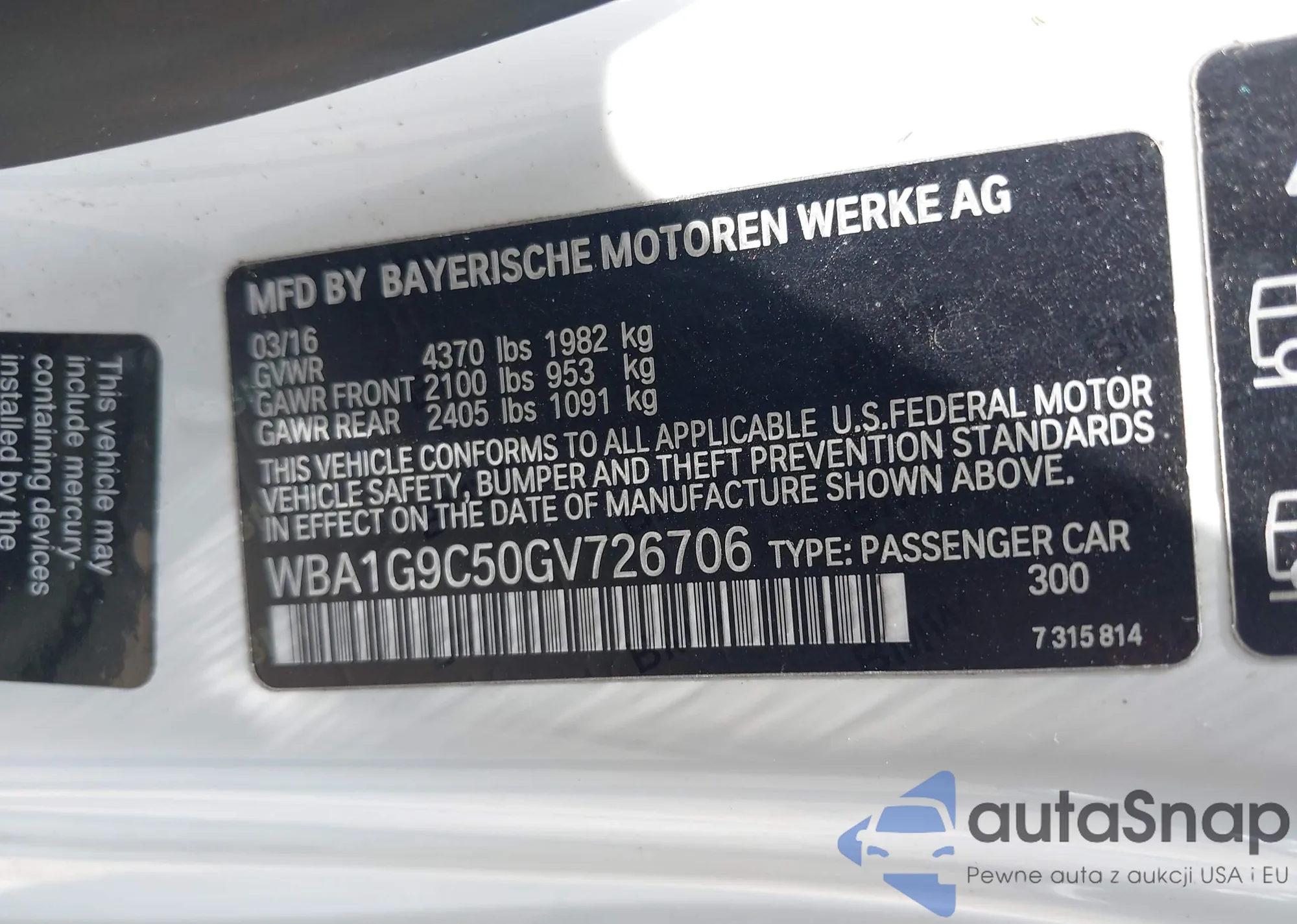 • VIN WBA1G9C50GV726706