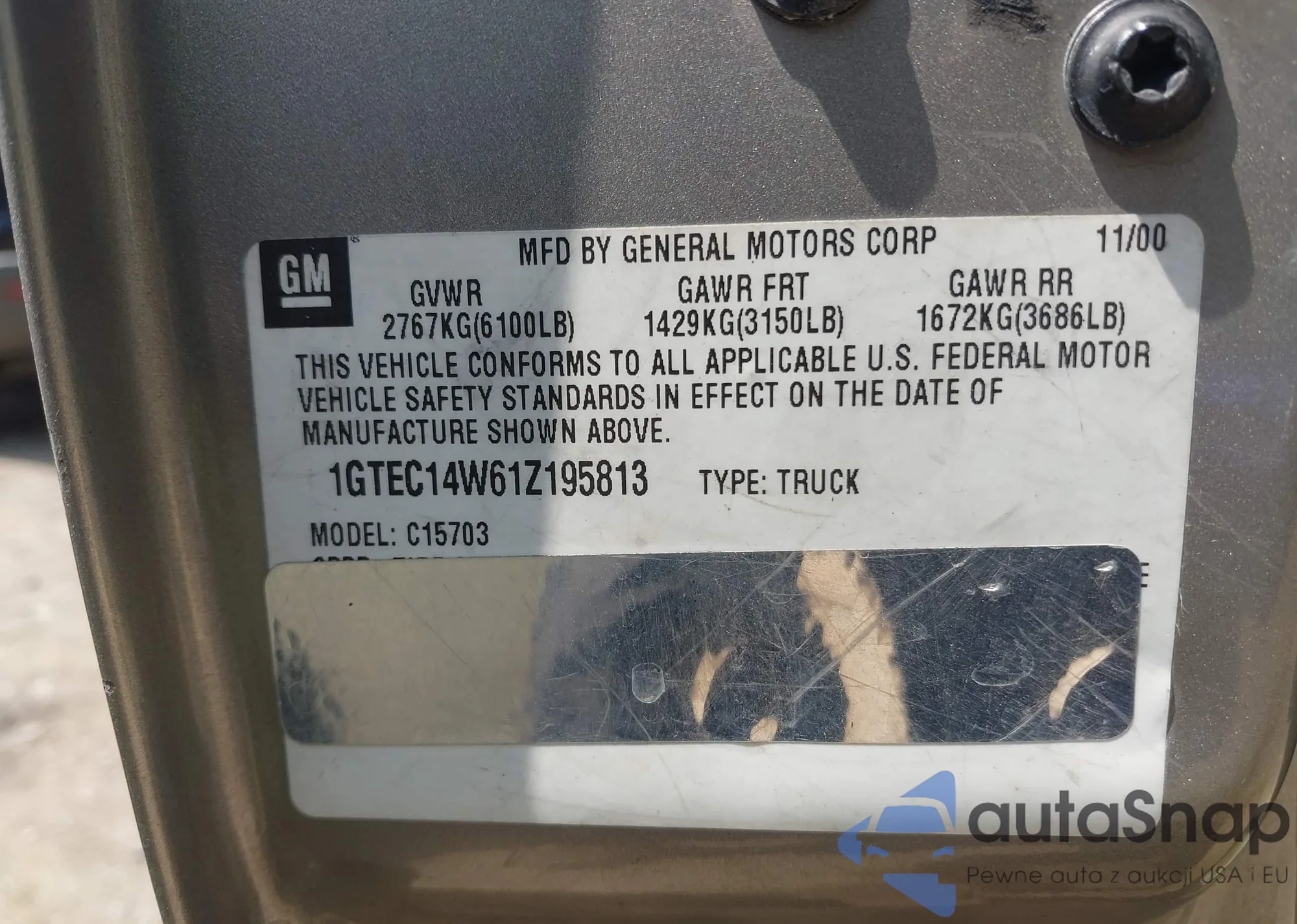• VIN 1GTEC14W61Z195813