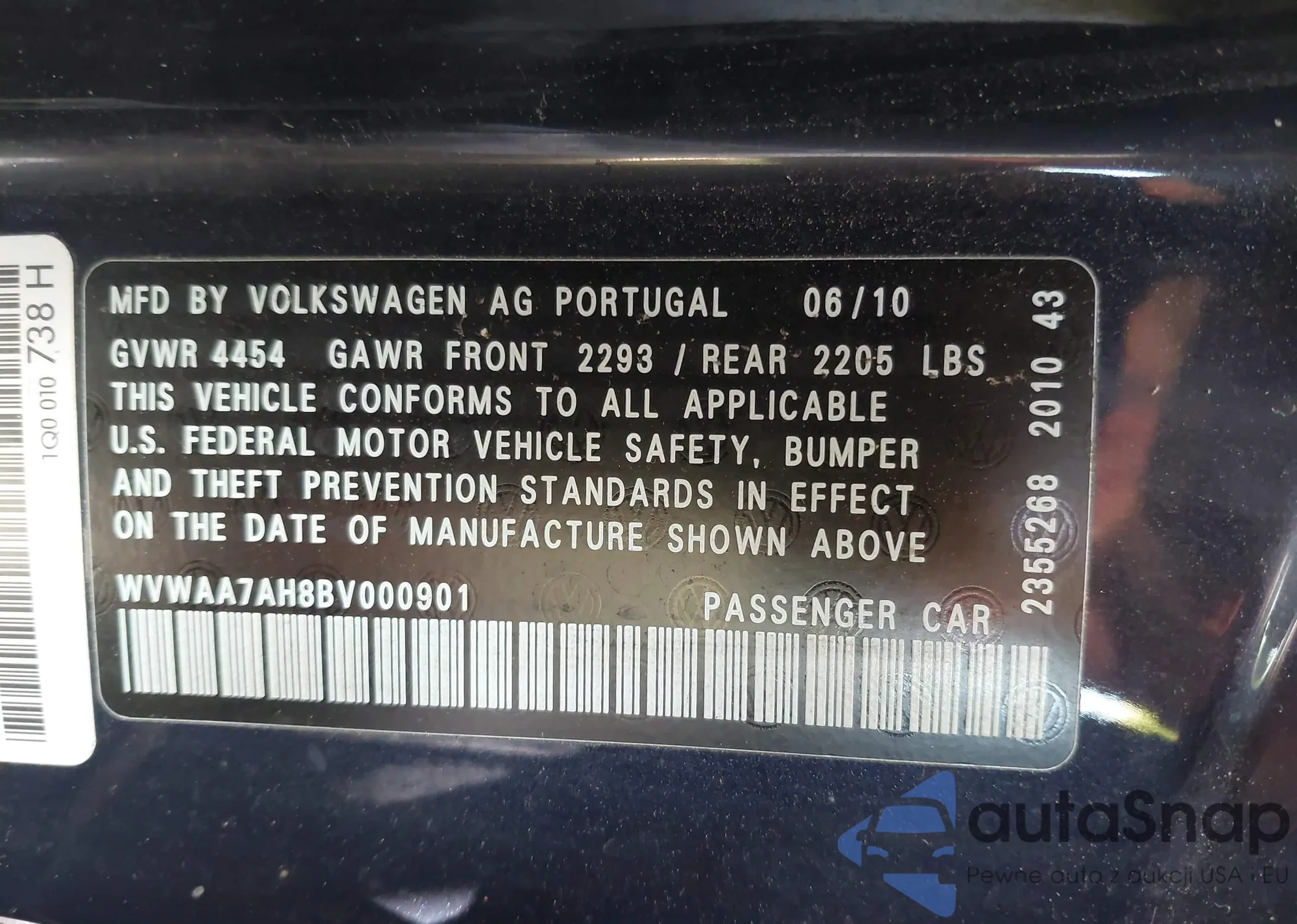 • VIN WVWAA7AH8BV000901