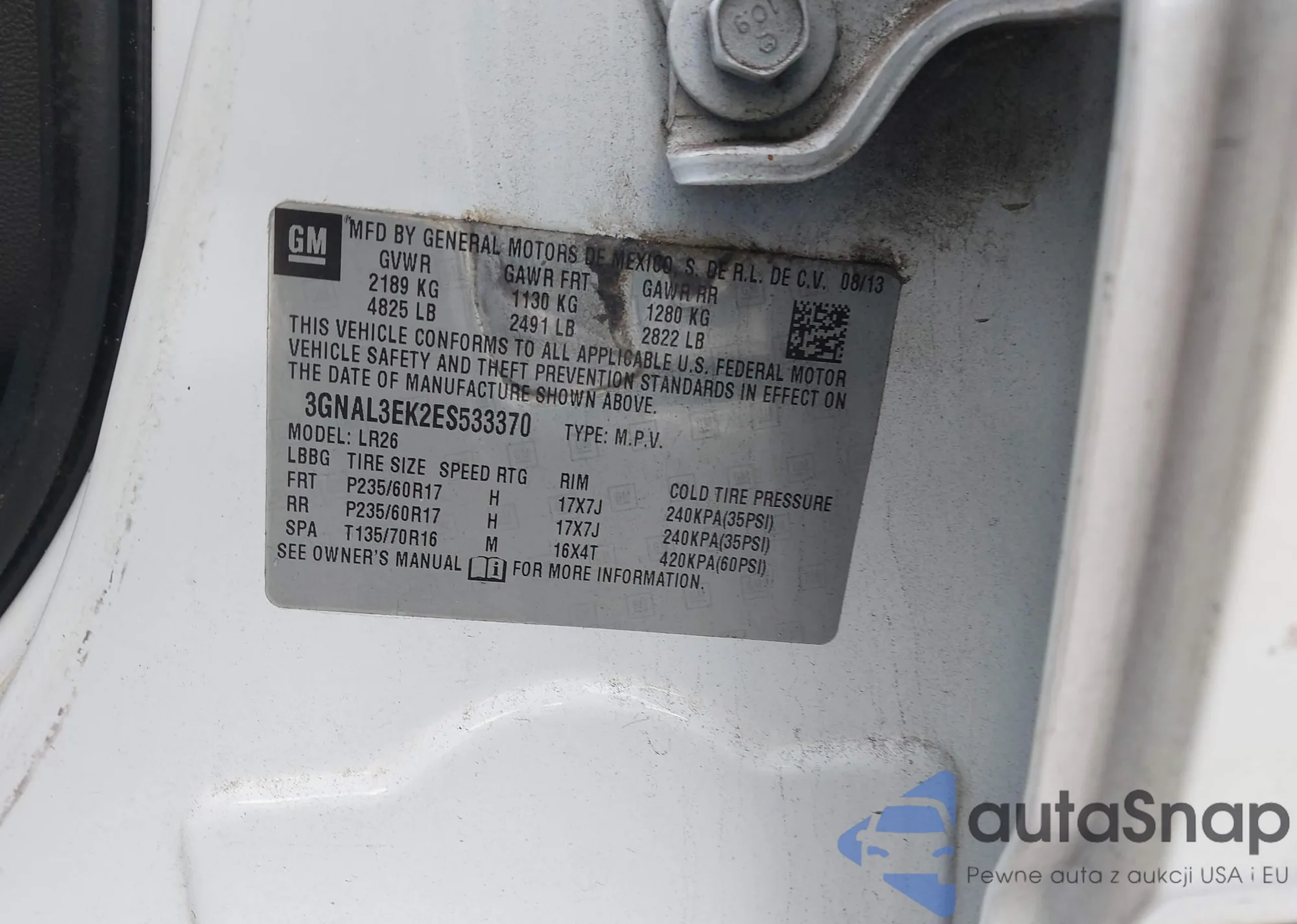 • VIN 3GNAL3EK2ES533370