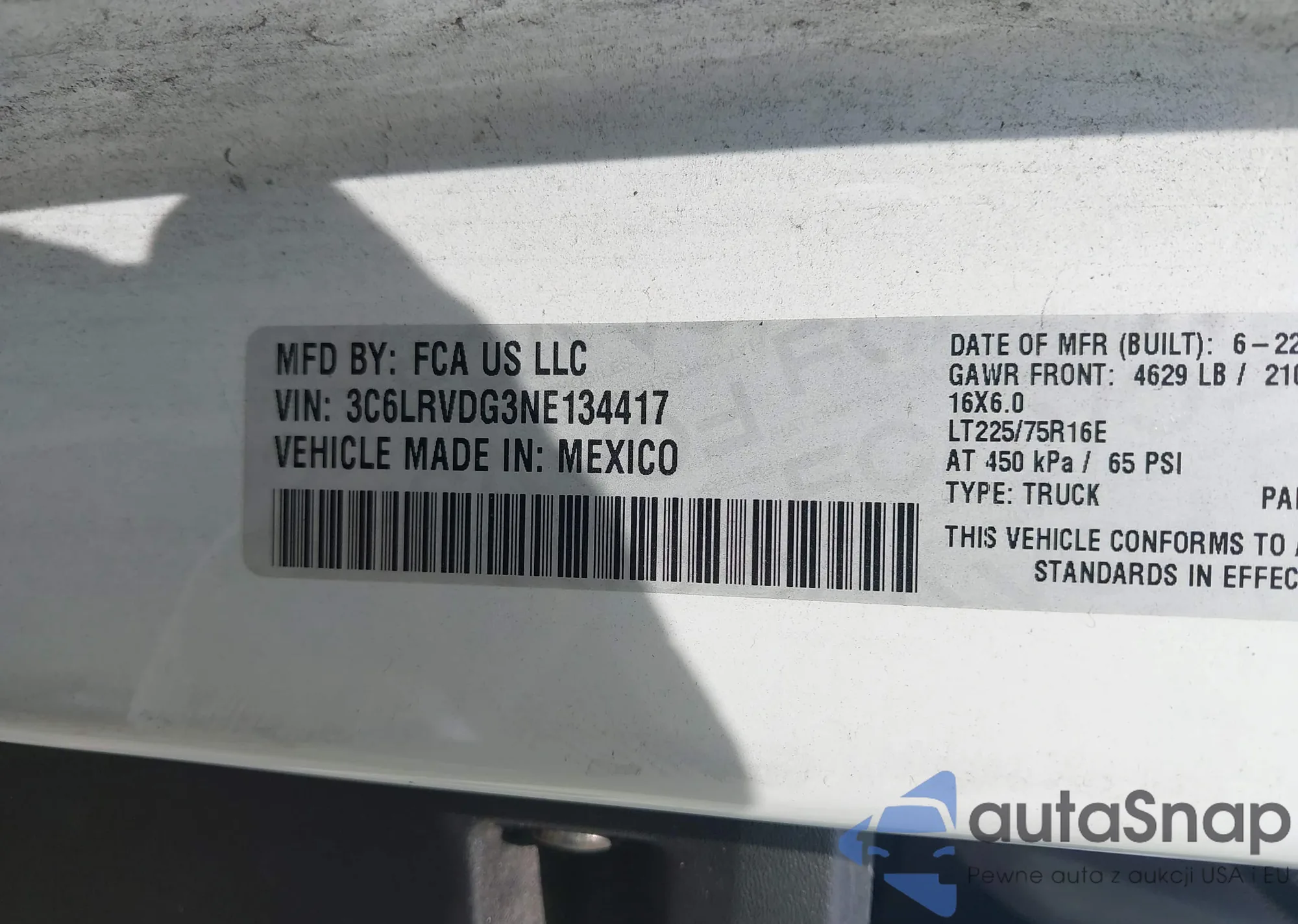 • VIN 3C6LRVDG3NE134417