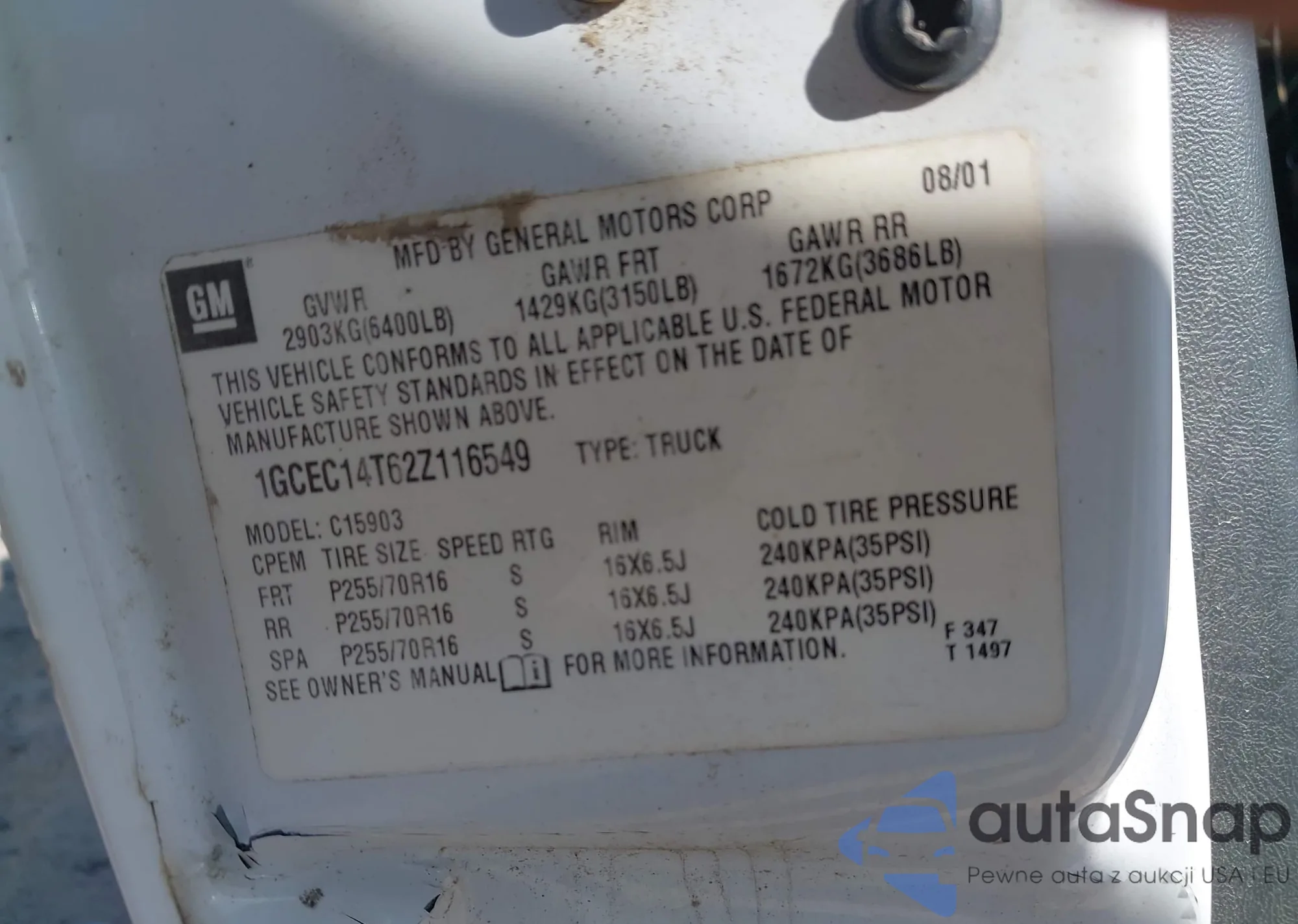 • VIN 1GCEC14T62Z116549