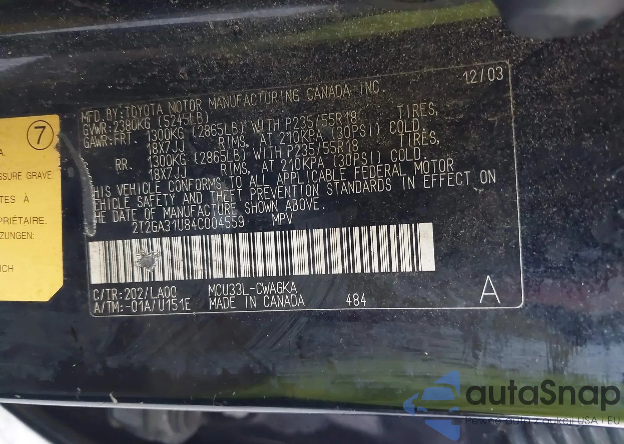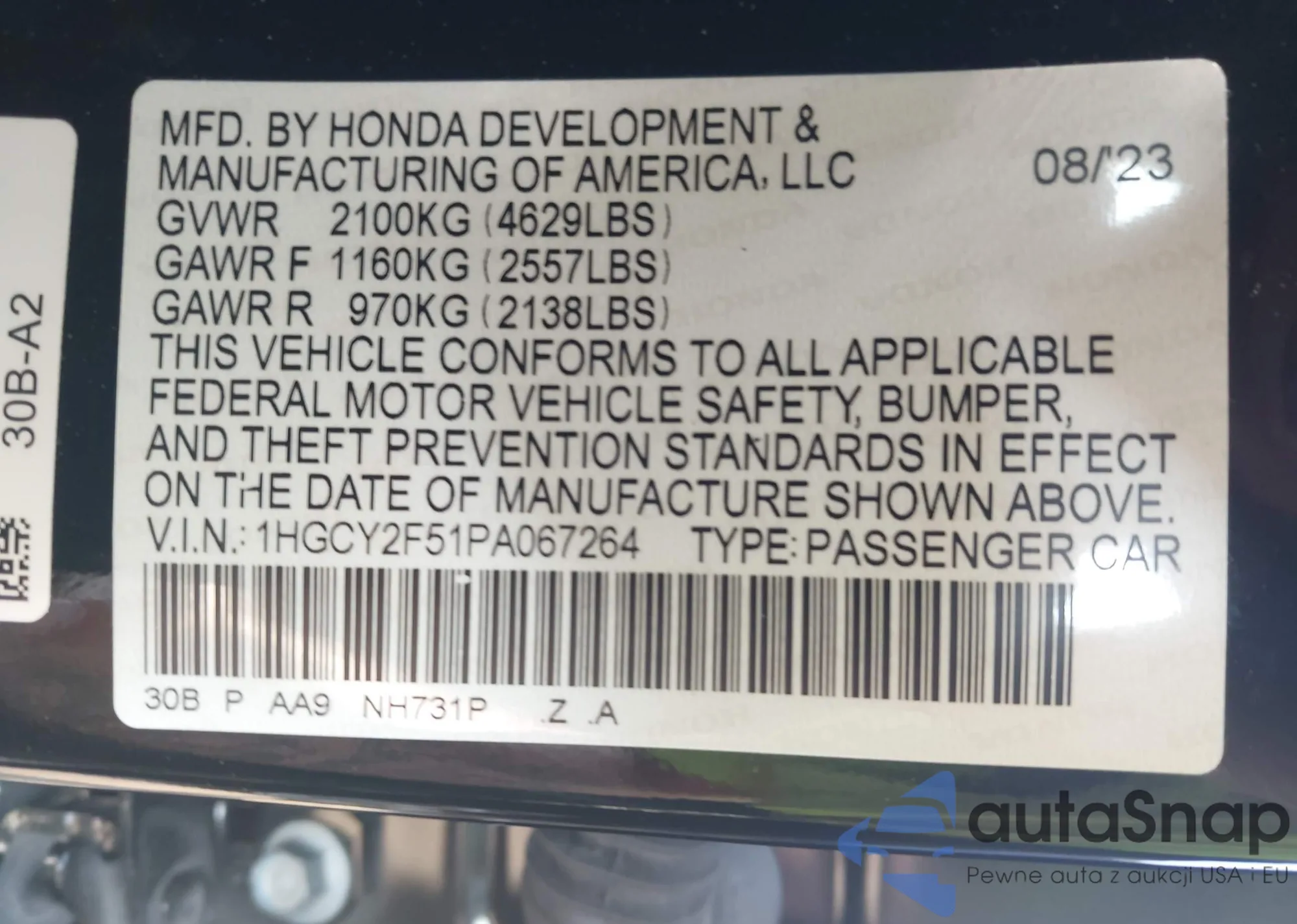 LOT: 42263712 VIN: 1HGCM567X7A101538