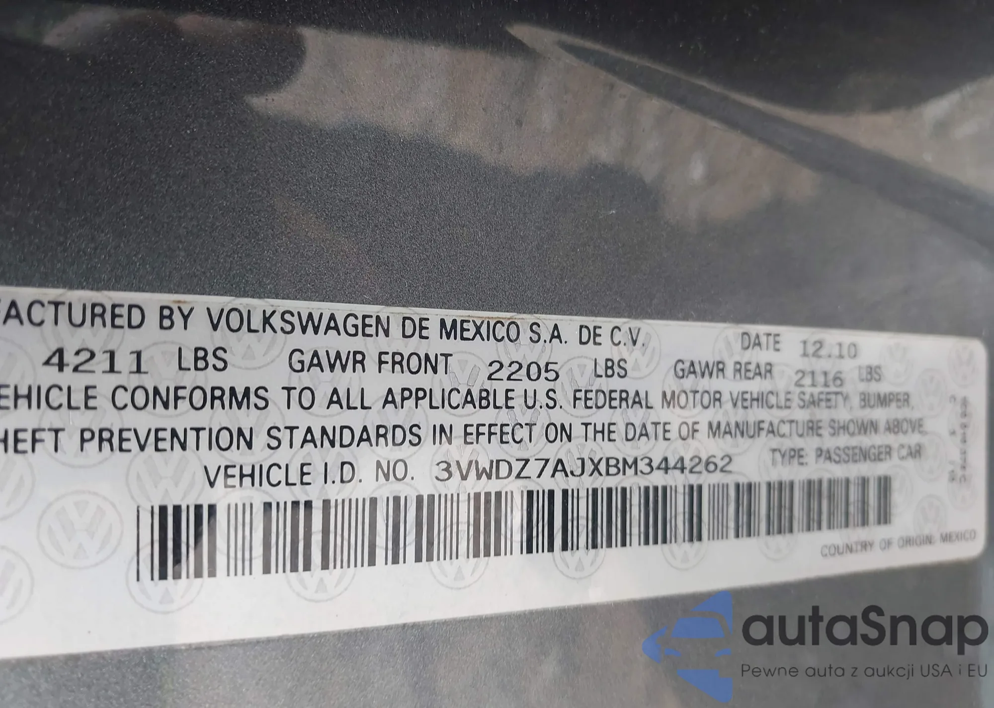 • VIN 3VWDZ7AJXBM344262