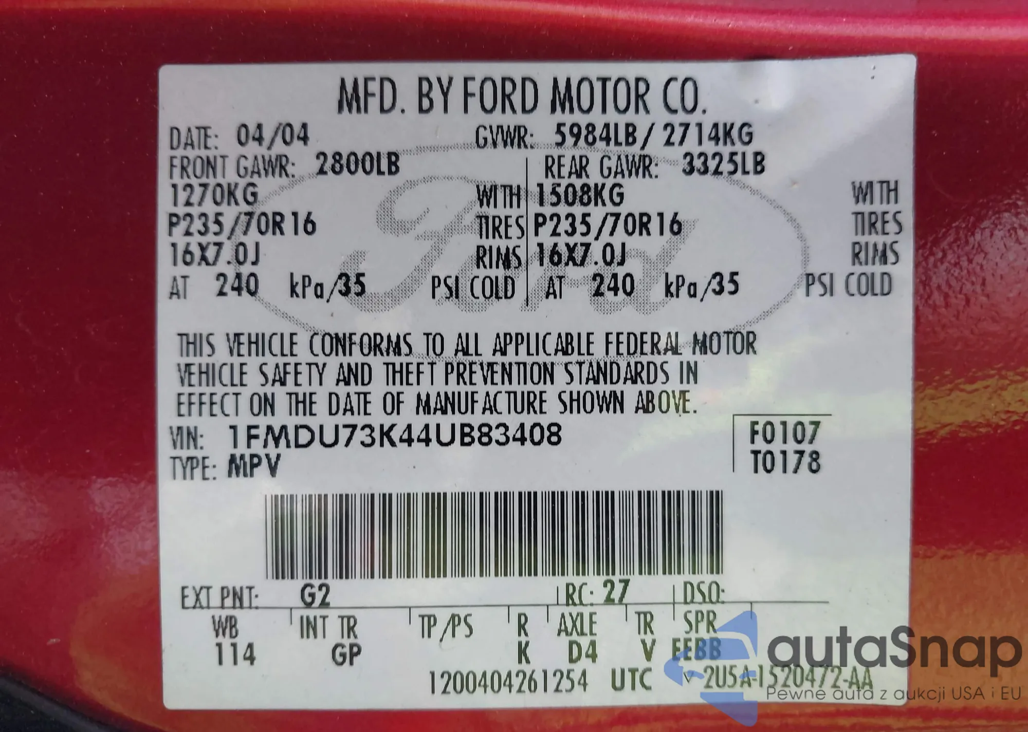 • VIN 1FMDU73K44UB83408