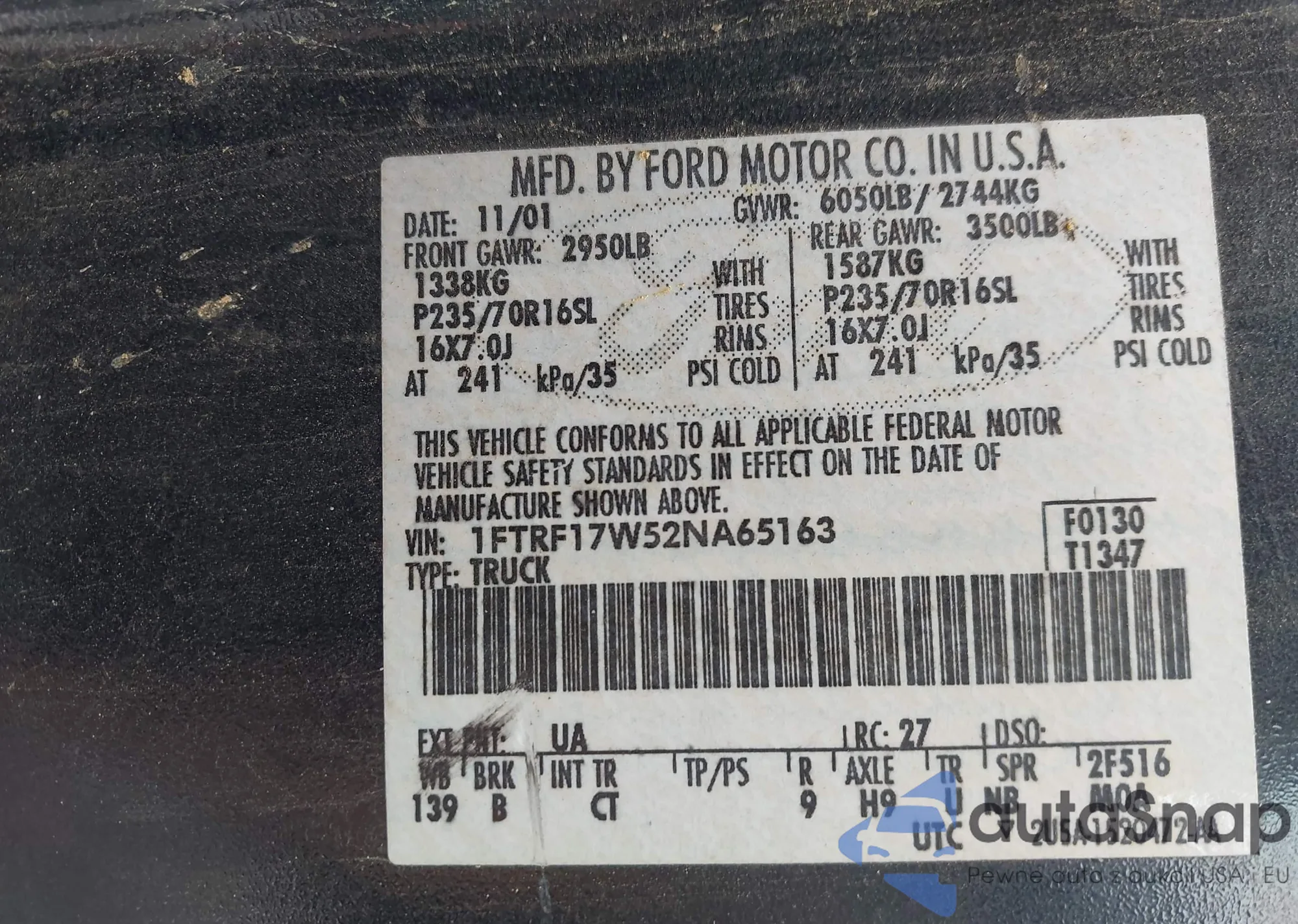 • VIN 1FTRF17W52NA65163