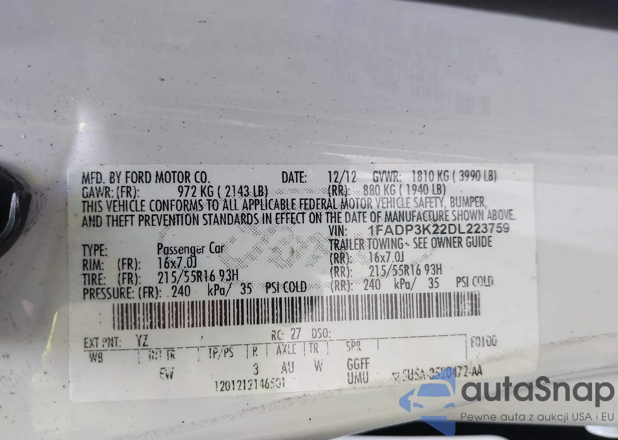 LOT: 43032139 VIN: WVWND23B3YE334136