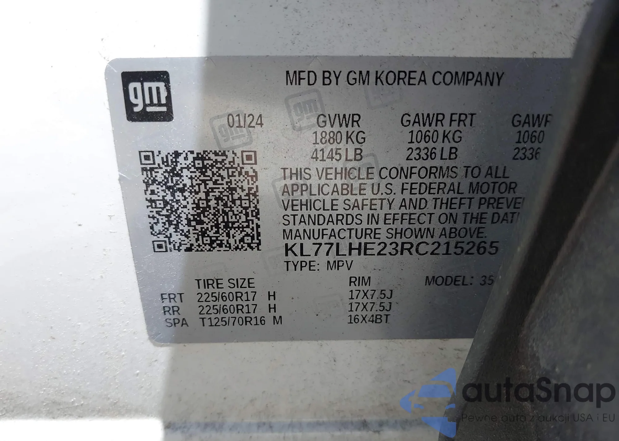 LOT: 42139473 VIN: KL77LHE23RC215265