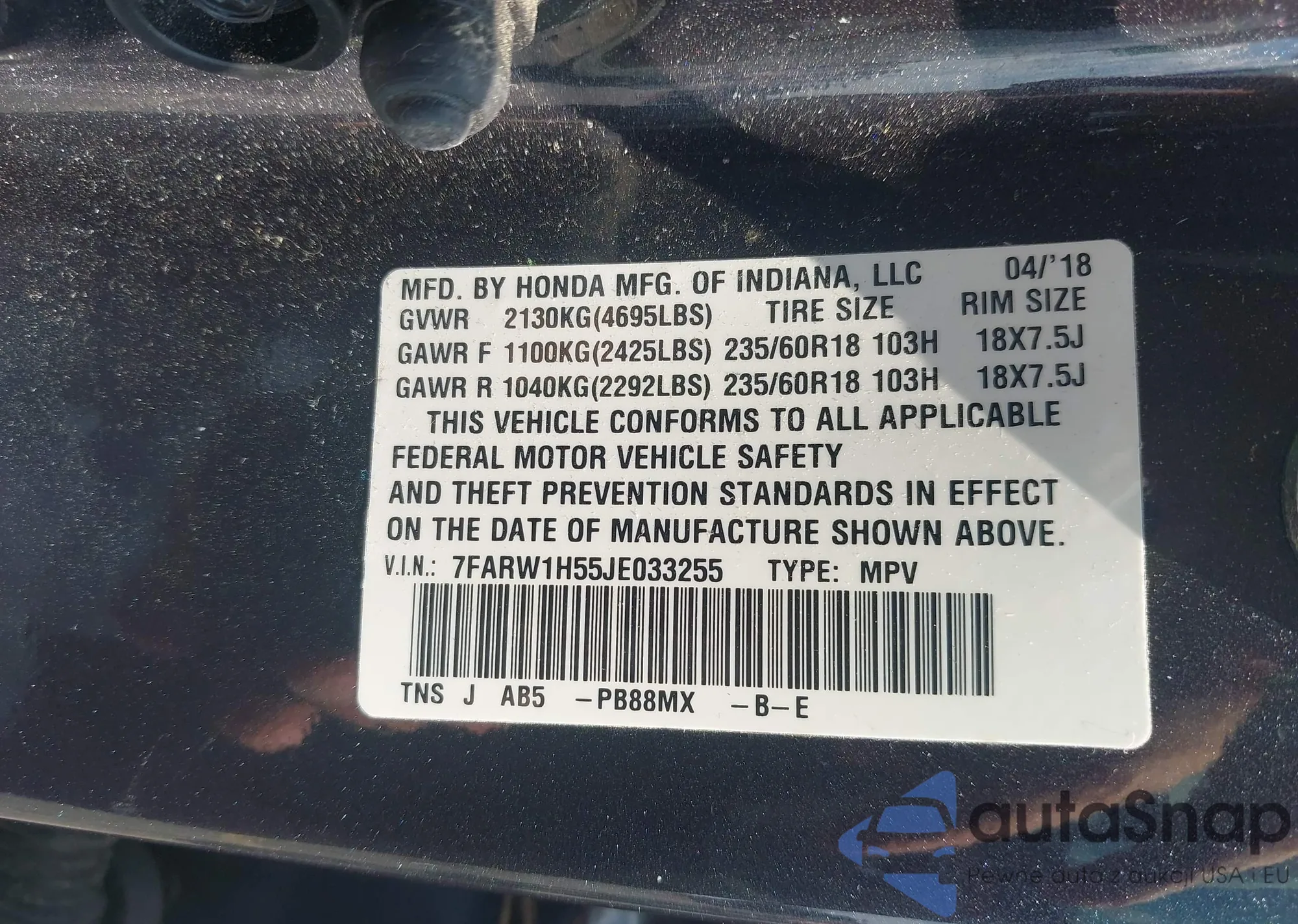 LOT: 42614367 VIN: 7FARW1H55JE033255