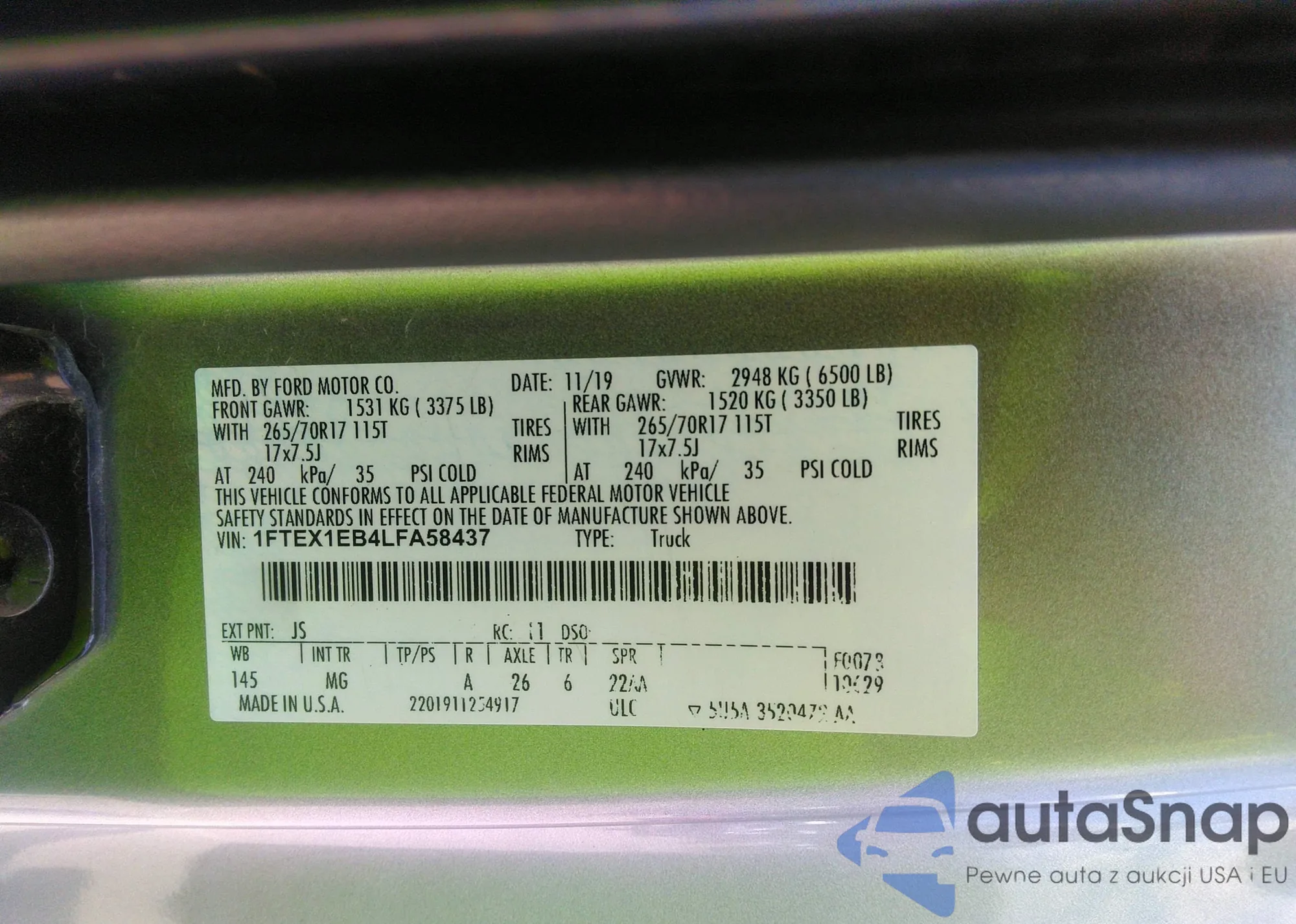 LOT: 42617156 VIN: 2FMPK4J99LBB44206
