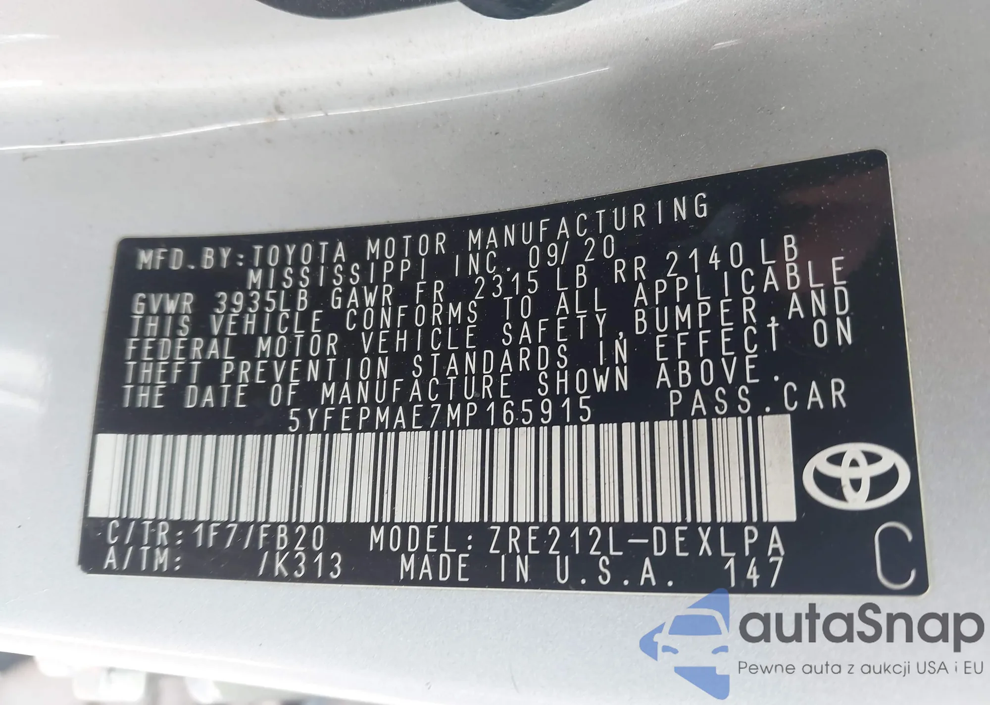 • VIN 5YFEPMAE7MP165915