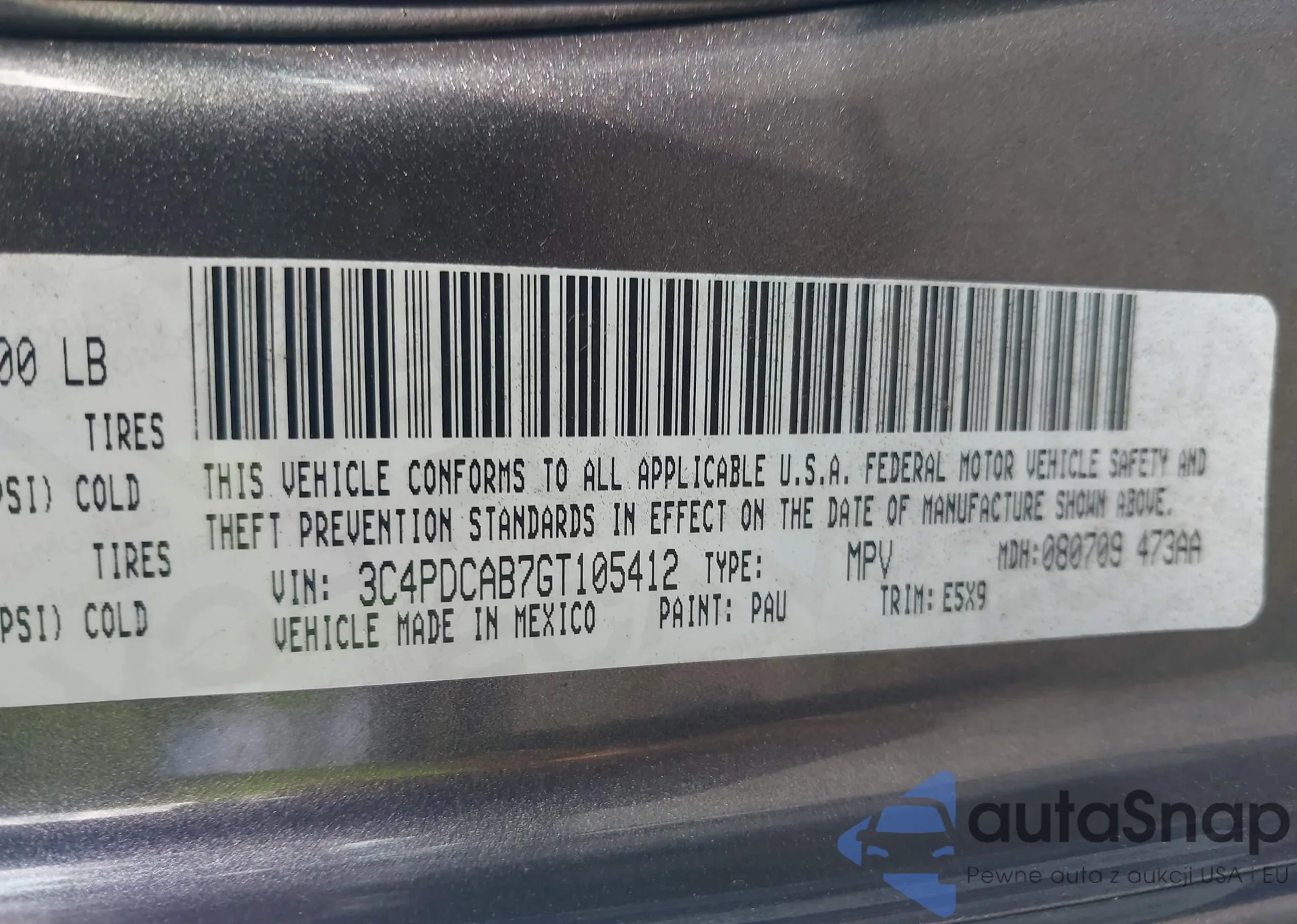 • VIN 3C4PDCAB7GT105412