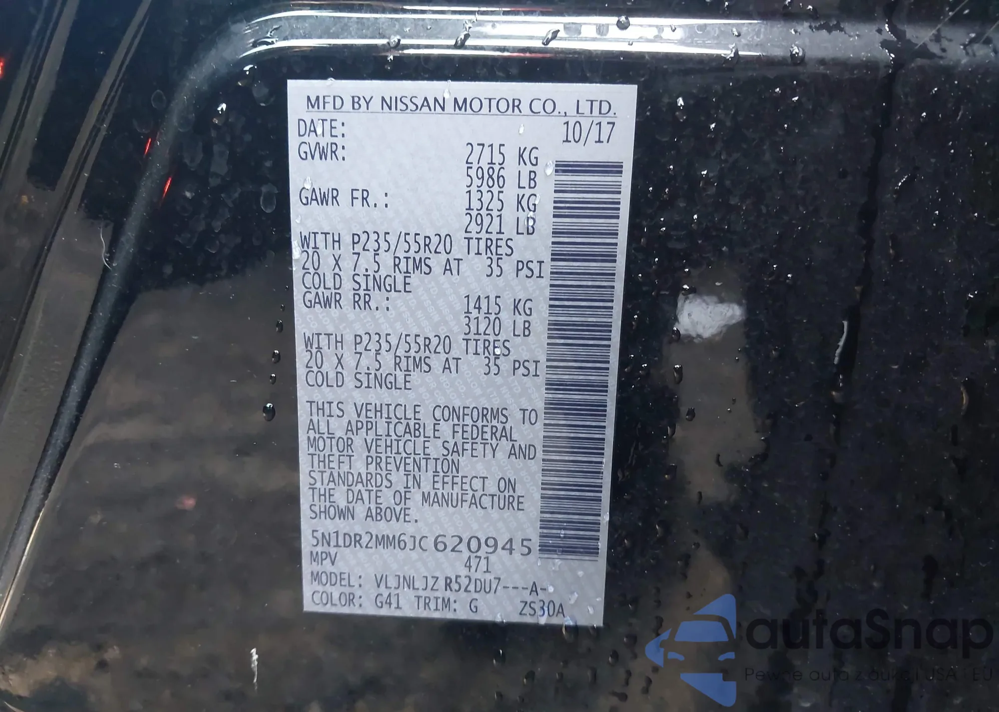 • VIN 5N1DR2MM6JC620945