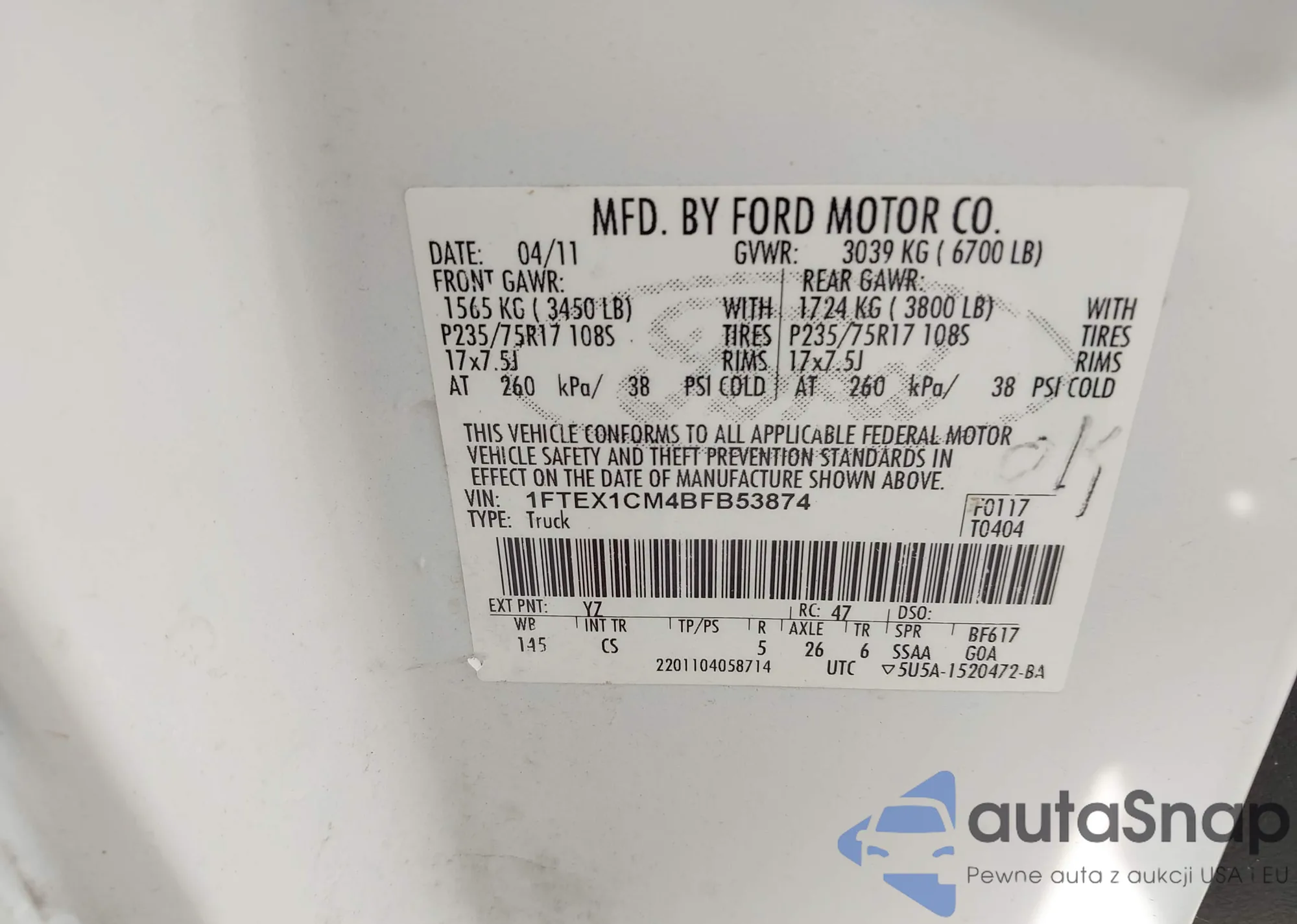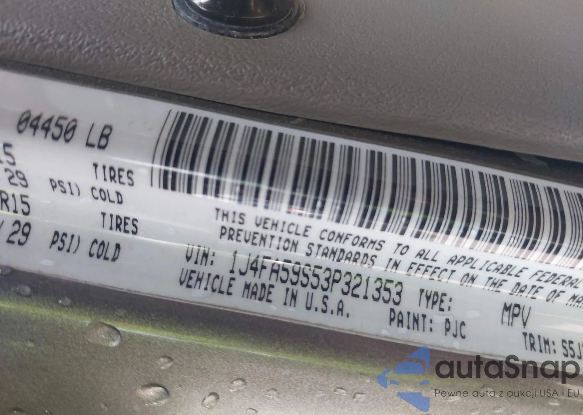 LOT: 42891173 VIN: 1J4FA59S53P321353