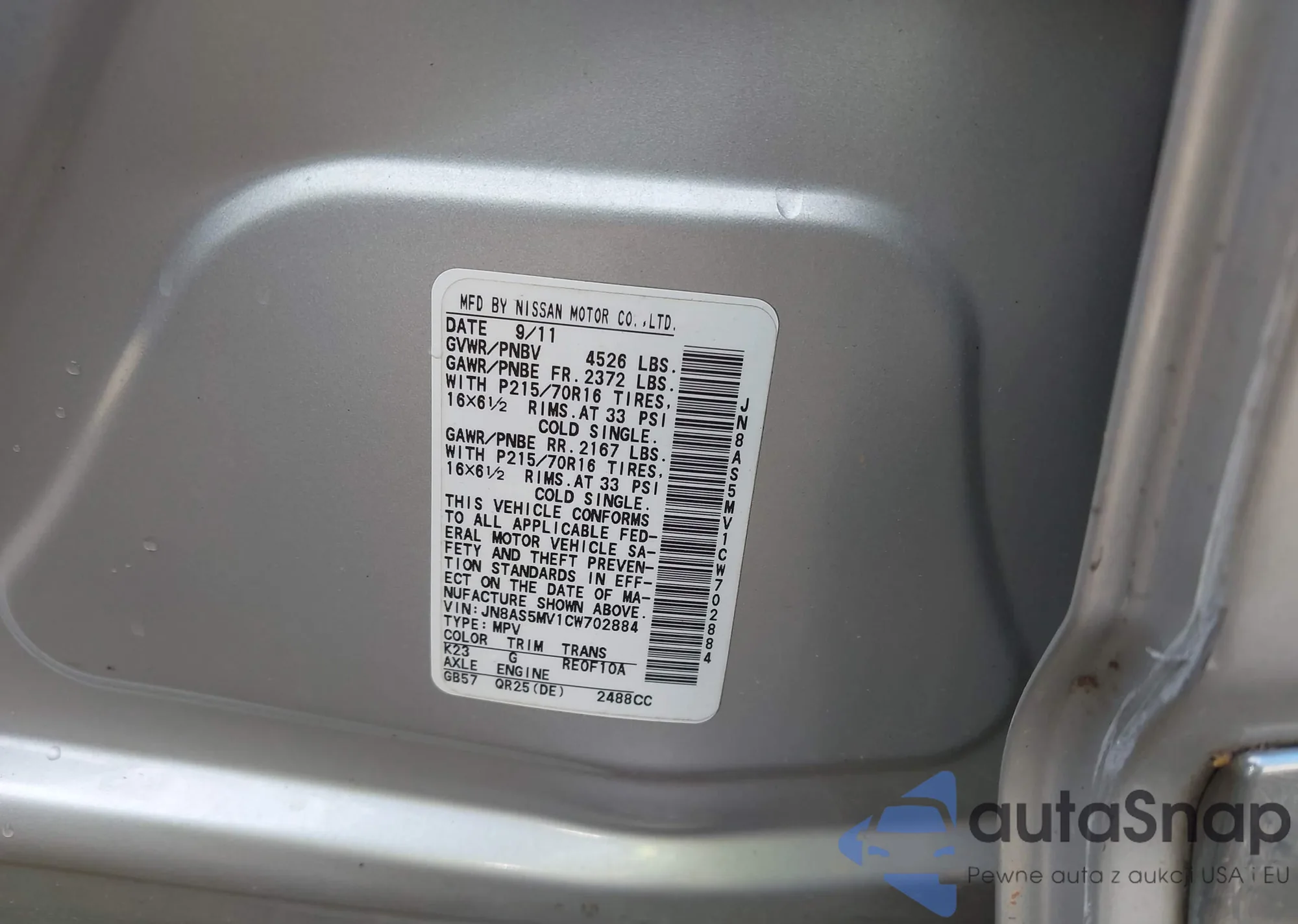 LOT: 42887576 VIN: JN8AS5MV1CW702884
