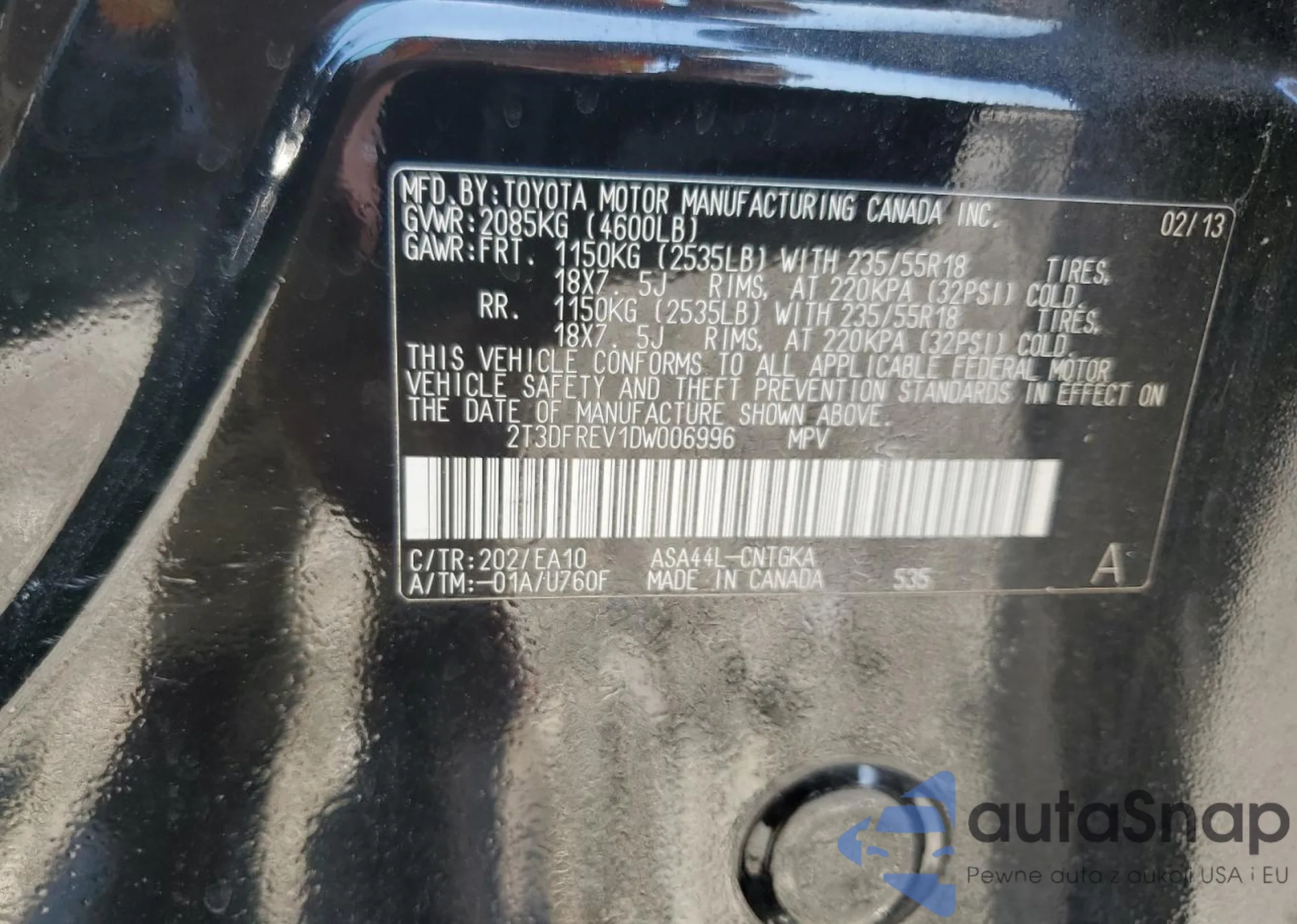 • VIN 2T3DFREV1DW006996