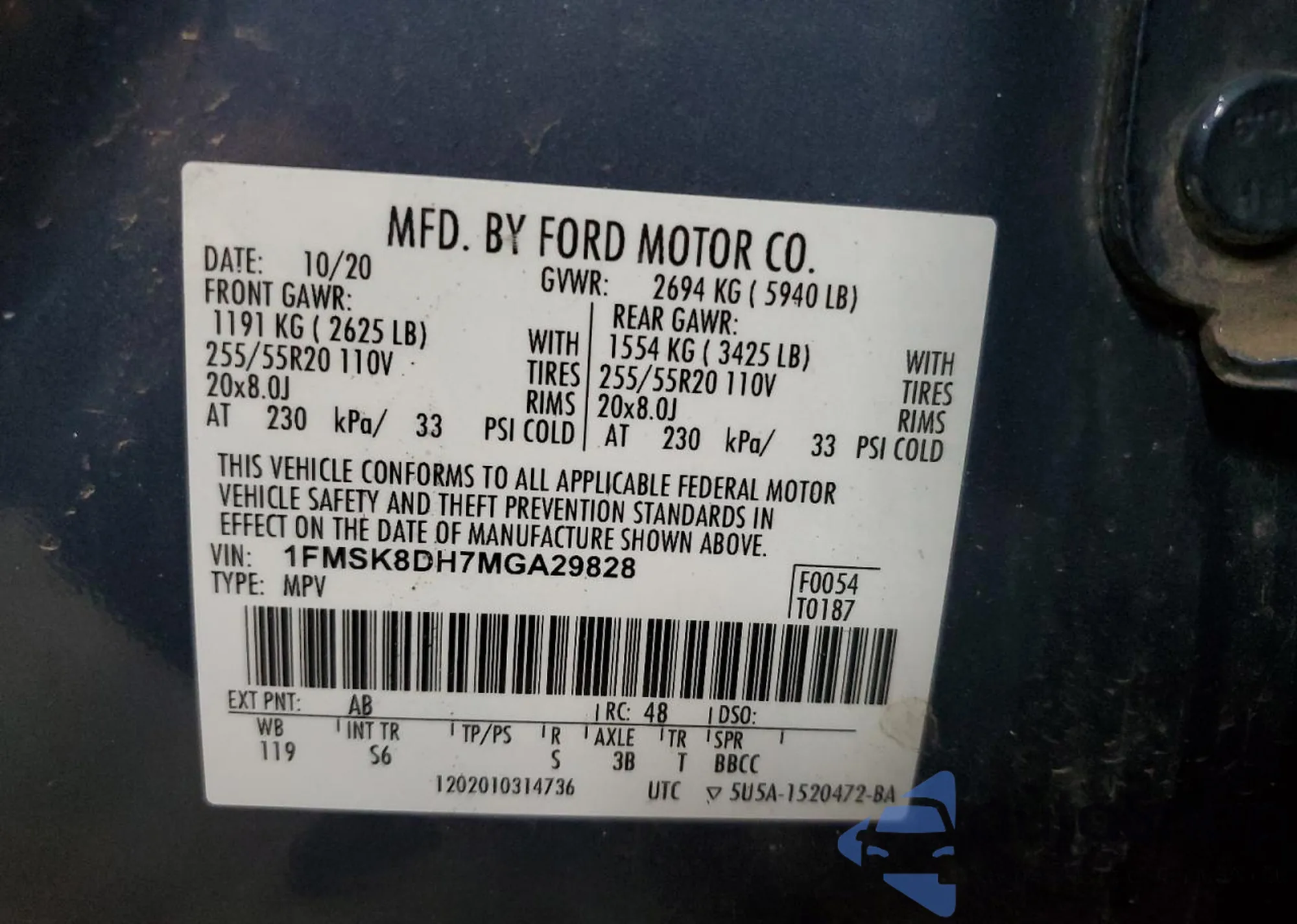 • VIN 1FMSK8DH7MGA29828