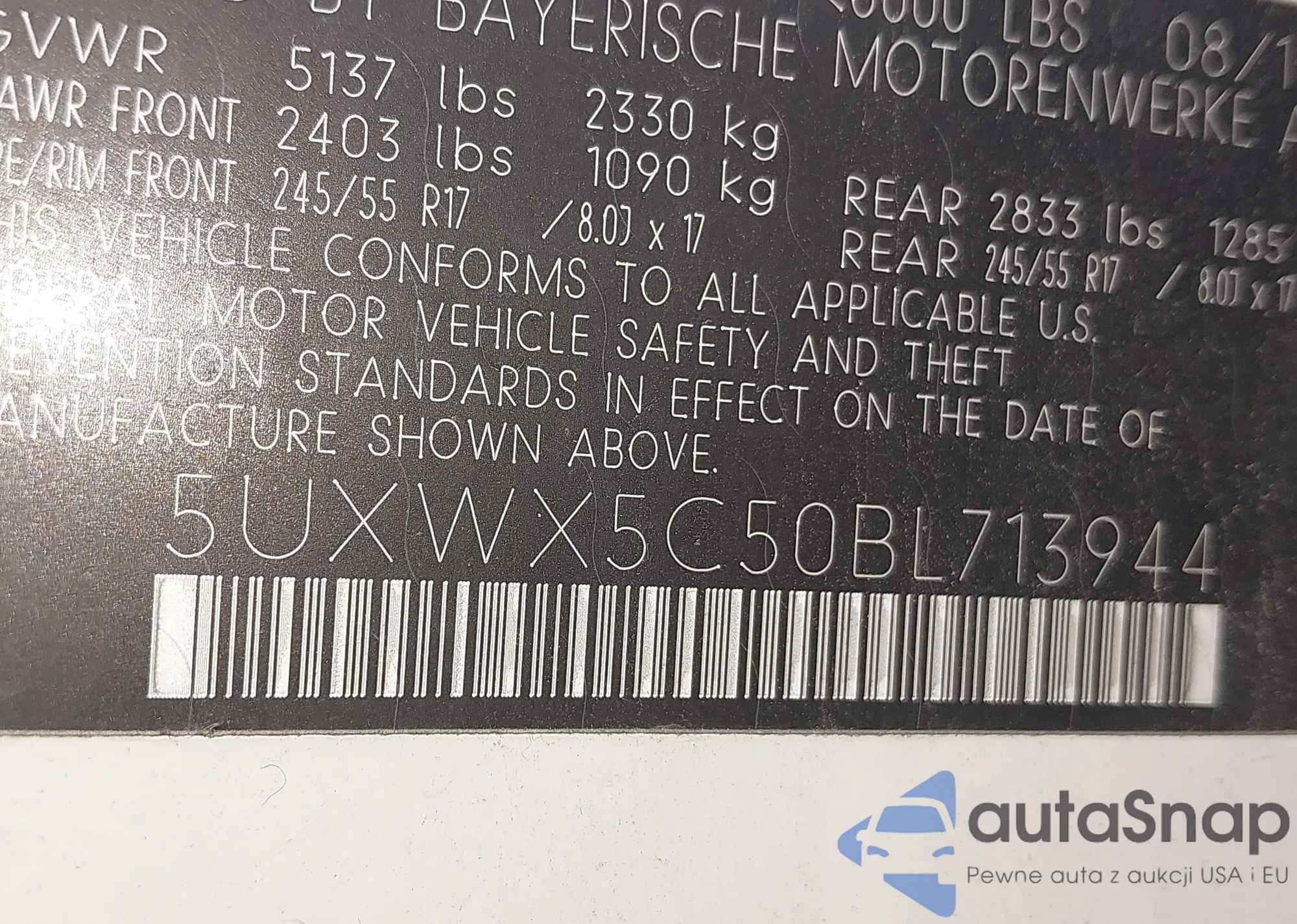 • VIN 5UXWX5C50BL713944