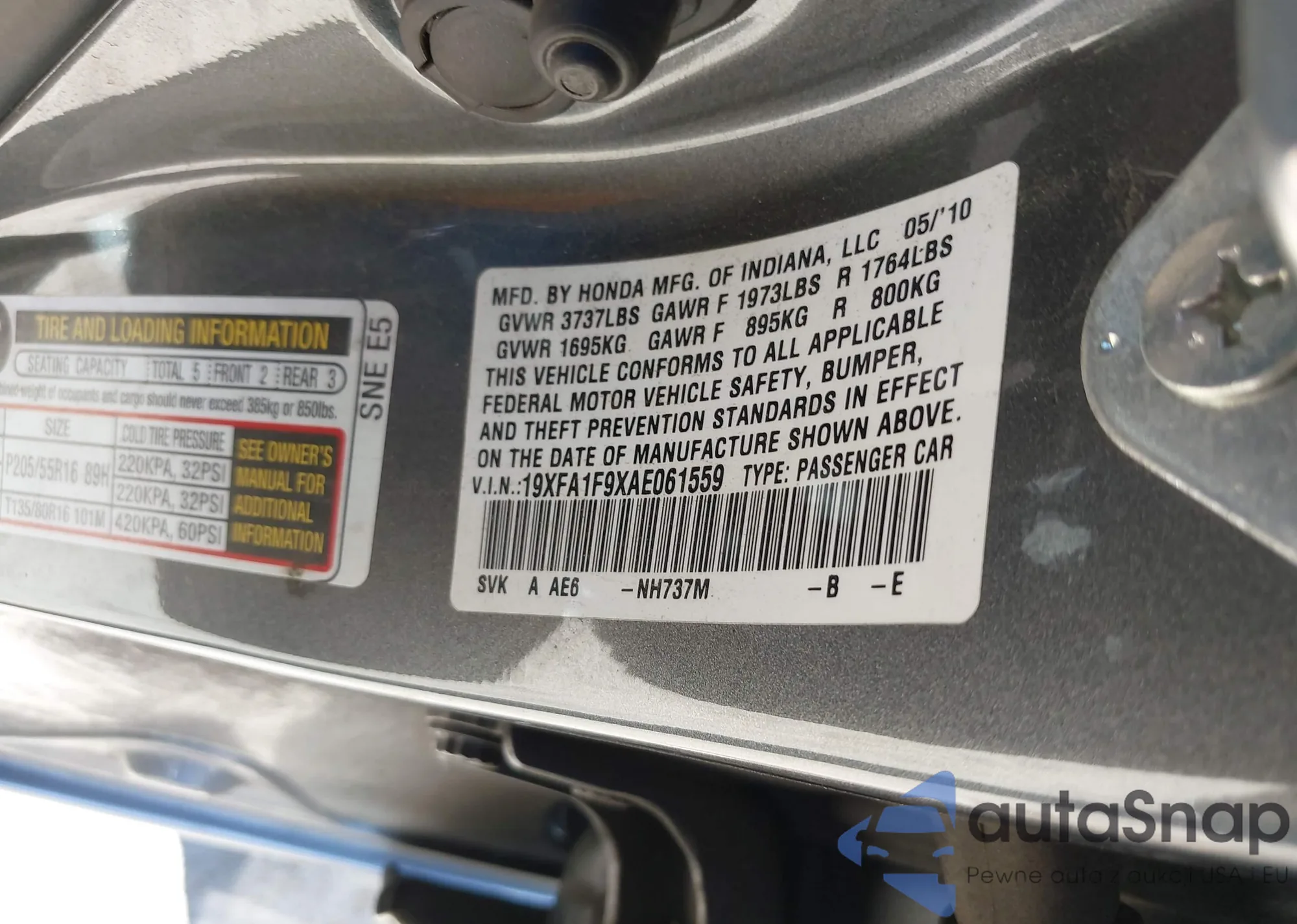 • VIN 19XFA1F9XAE061559