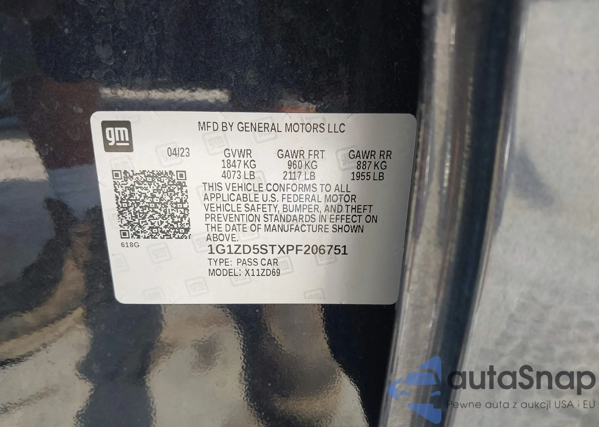 LOT: 43041202 VIN: 1G1ZD5ST6PF240217