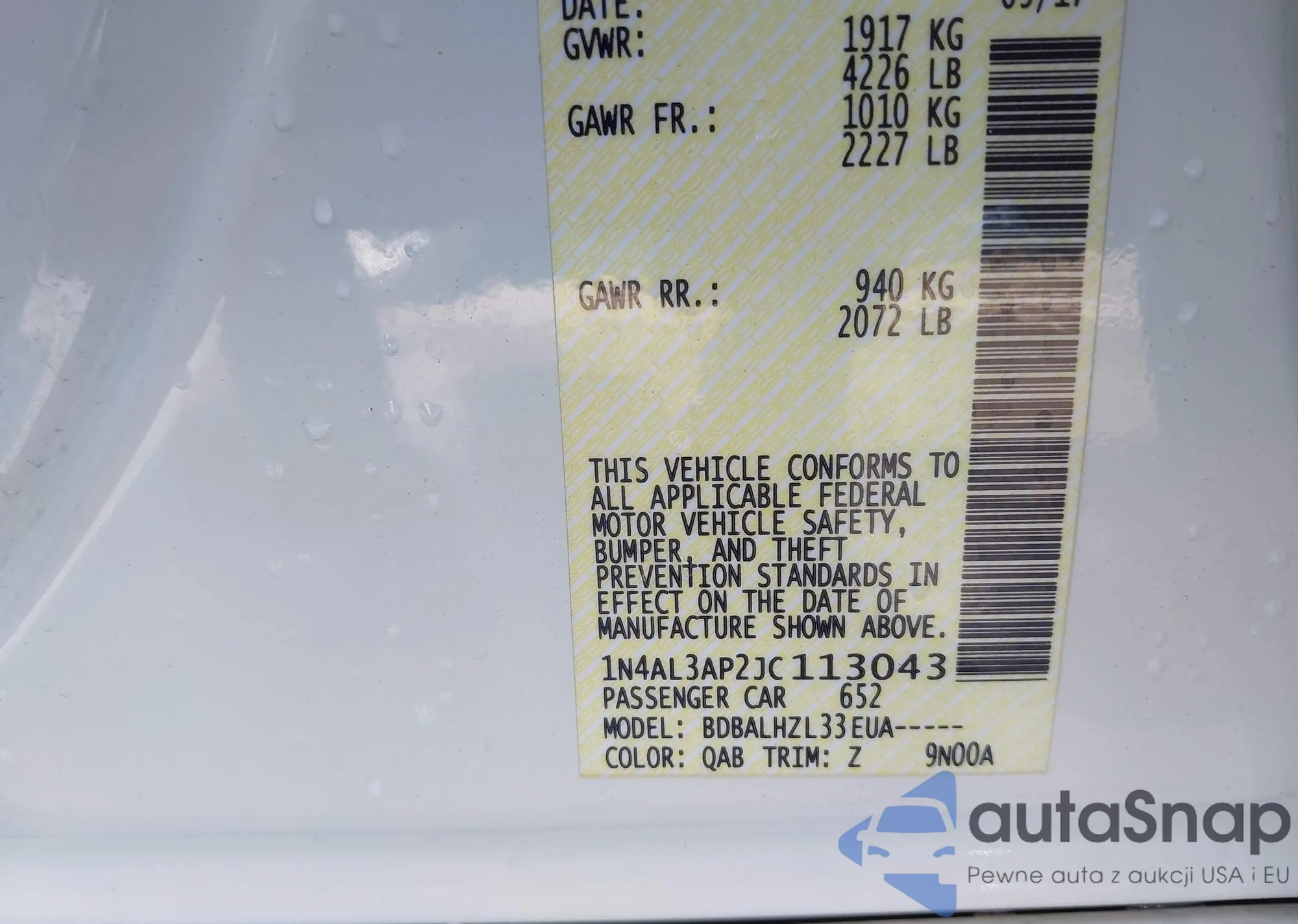 LOT: 42973342 VIN: 5N1AT2MT8HC807822